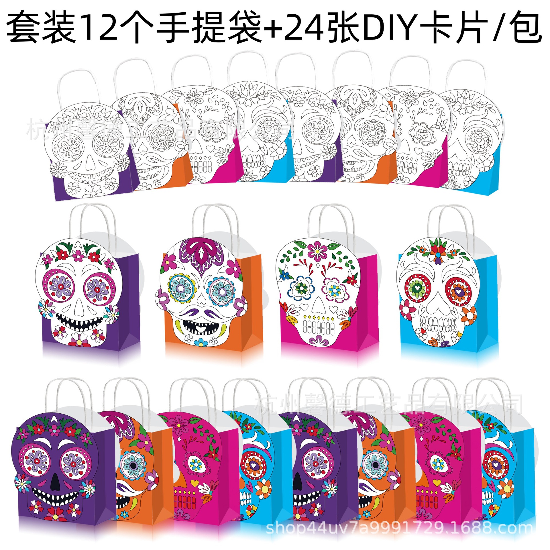 KZ206 外国貿易北米メキシコ死者の日スカルパーティー DIY 落書きカードギフトポータブル紙袋