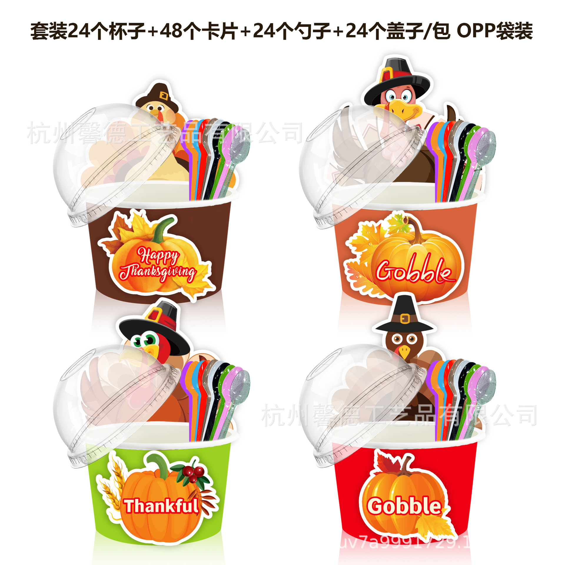 DZ041-B 外国貿易感謝祭立体七面鳥カボチャホリデーアイスクリームカップデザートコールドドリンクボックス蓋スプーン