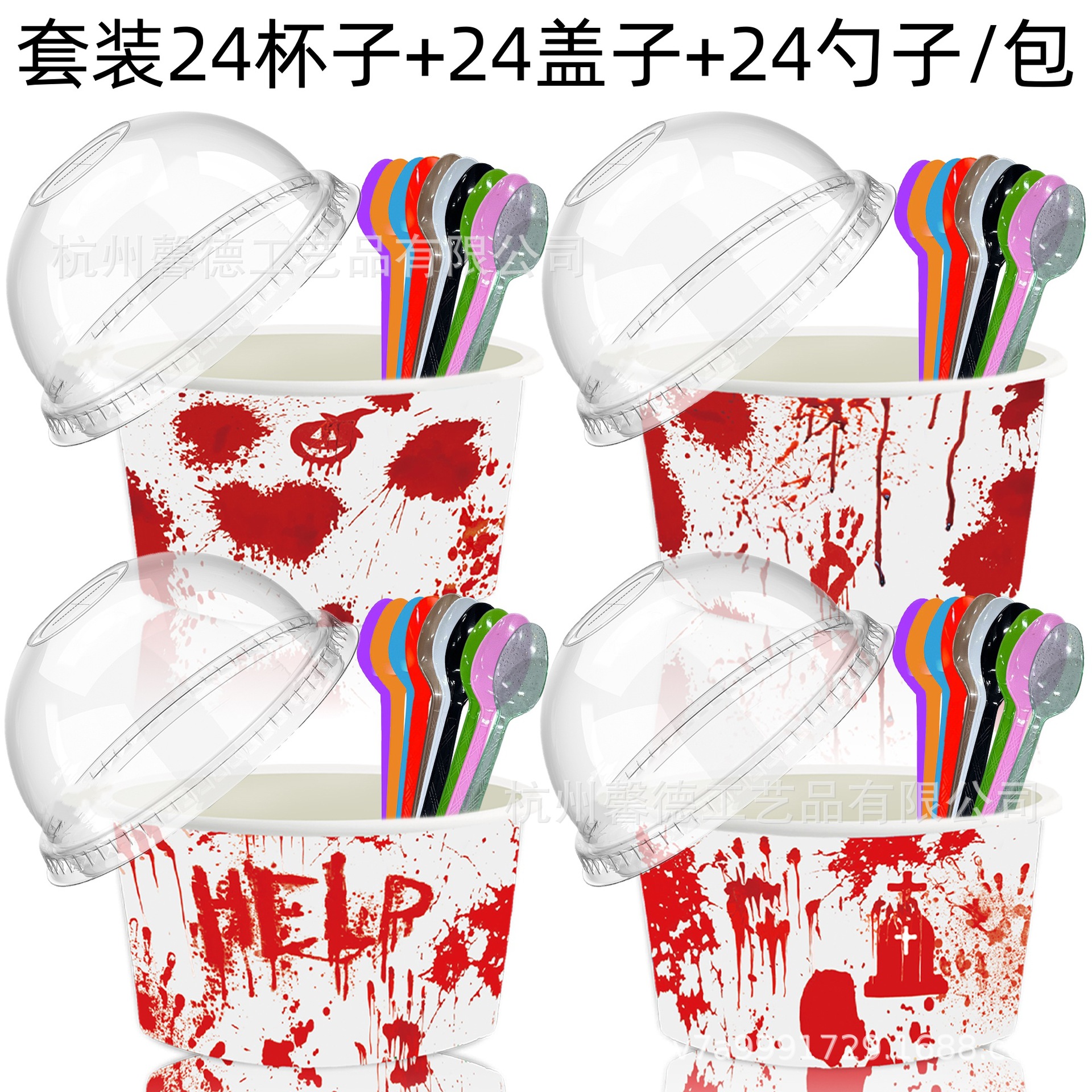 BQ053 外国貿易アマゾンブラッディハロウィンホラーブラッドハンドアイスクリームカップデザートコールドドリンクボックス蓋スプーン