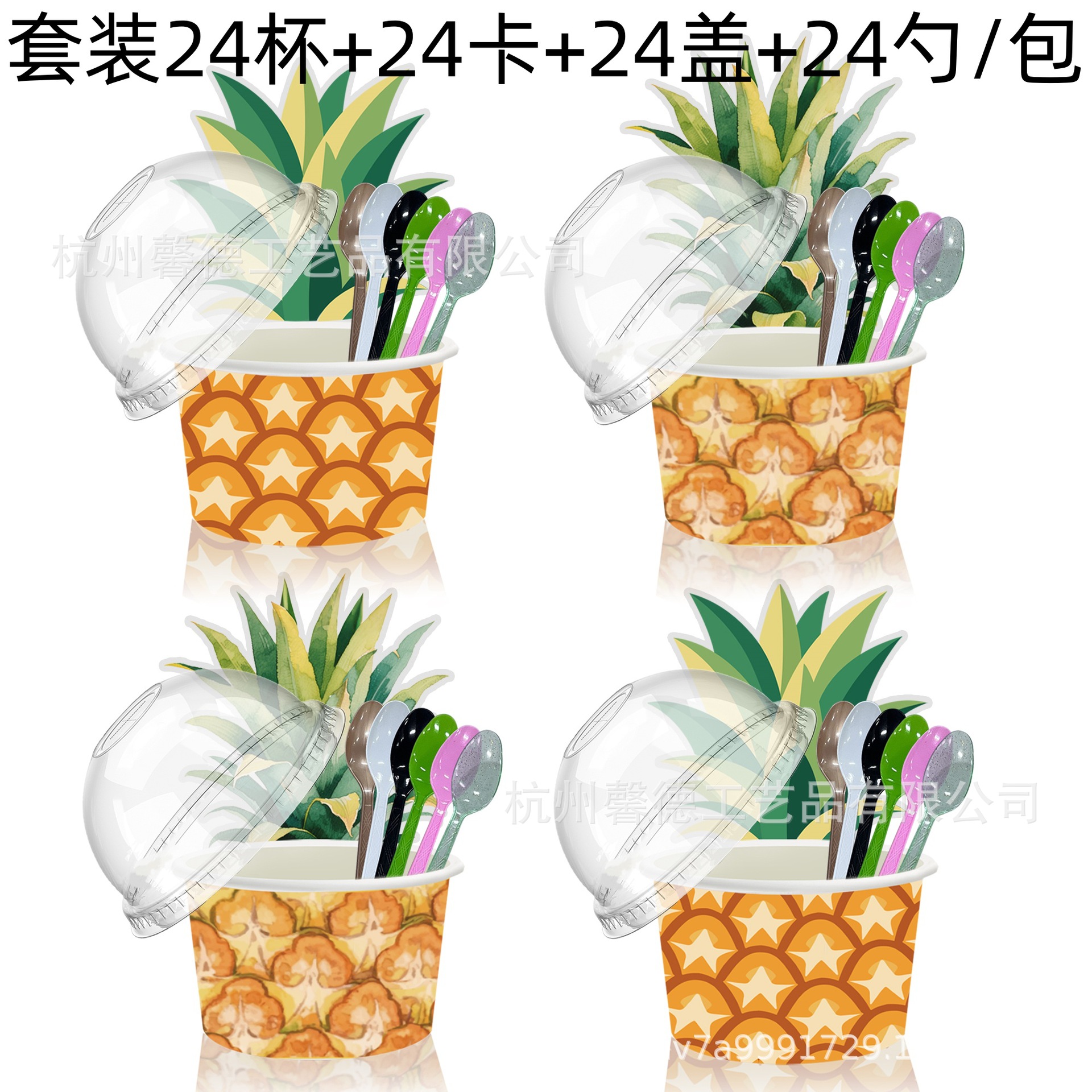 BQ051外国貿易のフルーツの黄色のパイナップルの立体の葉のカードのアイスクリームのカップのデザートの冷たい飲み物の箱のふたのスプーン