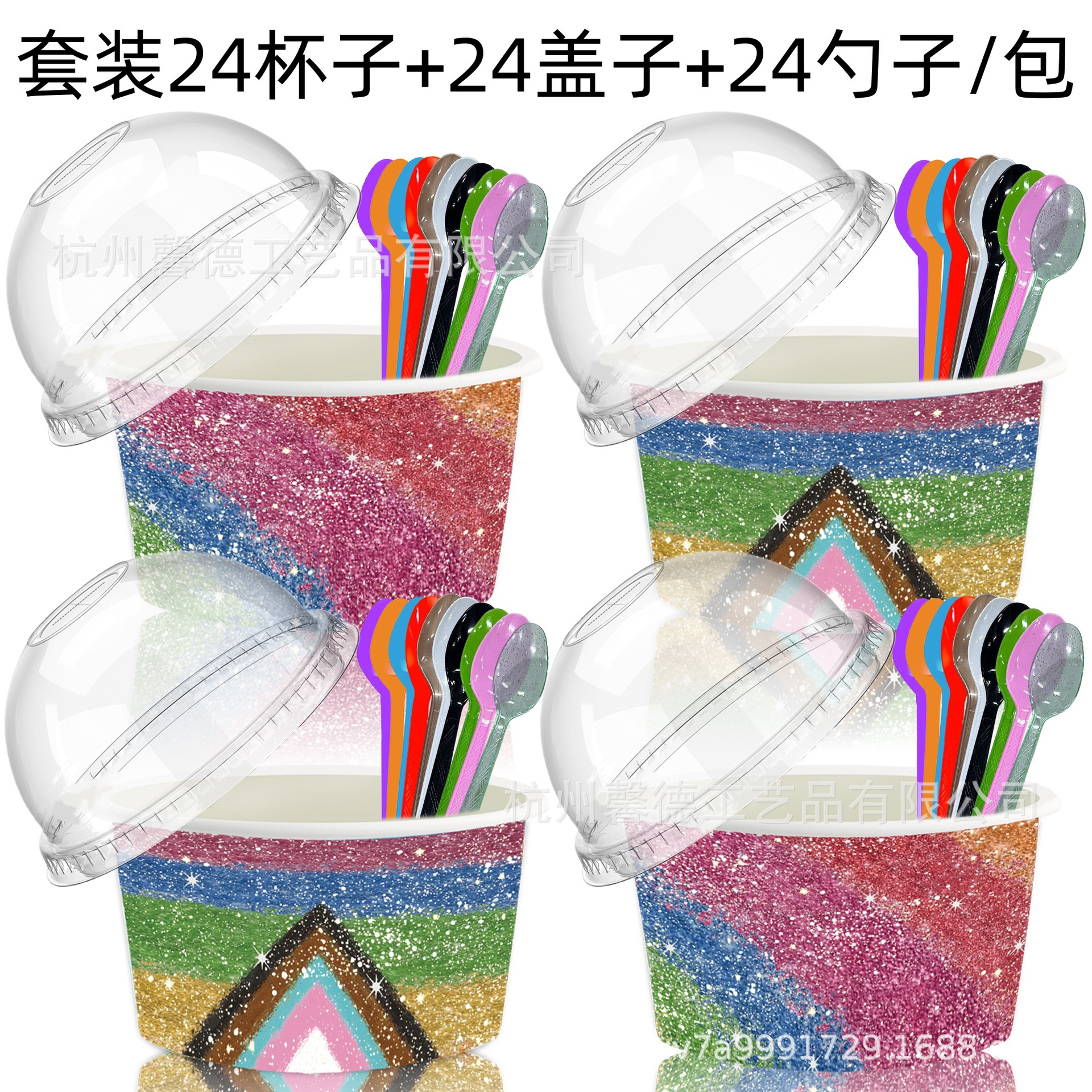 BQ048 外国貿易カラーゴールドゴールドパウダーレインボーヨーロッパとアメリカのホリデーアイスクリームカップデザートコールドドリンクボックス蓋スプーン