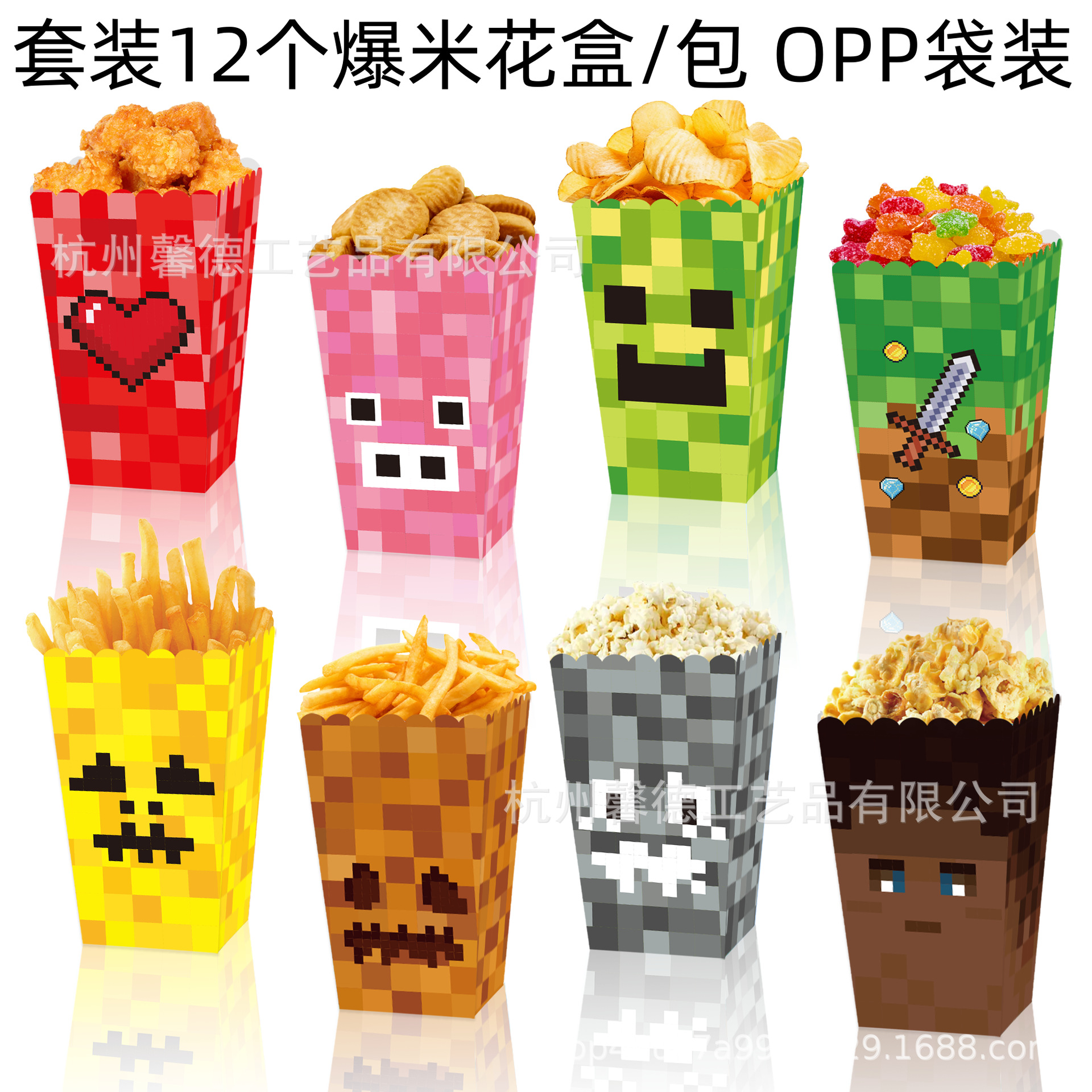 BM059 外国貿易ゲーム マインクラフト ピクセルモザイク 誕生日パーティー チキンポップコーン スナック ポップコーンボックス