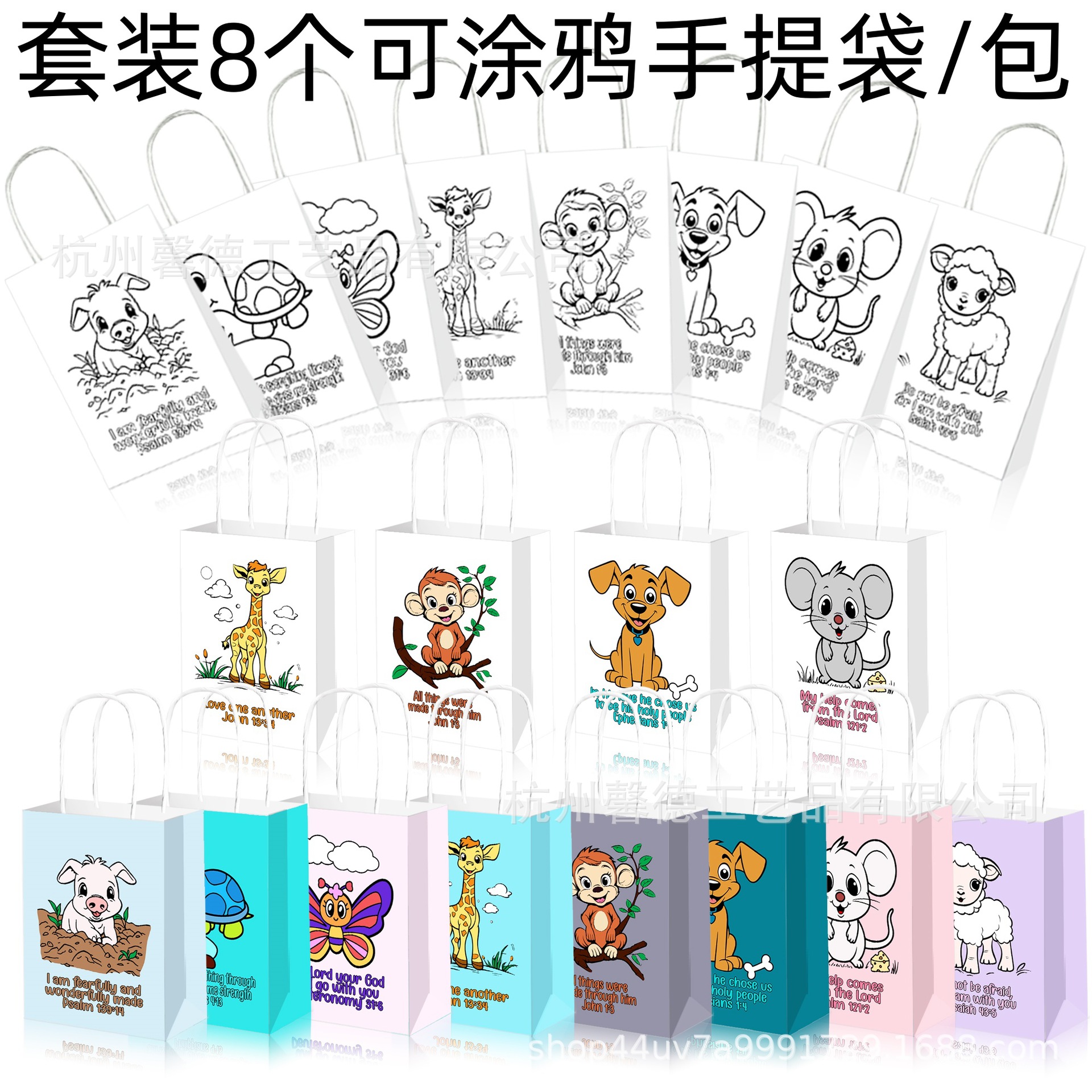 BD247外国貿易ジャングル動物猿ヒツジ蝶手描き落書きパーティープレゼントキャンディー手提げ紙袋