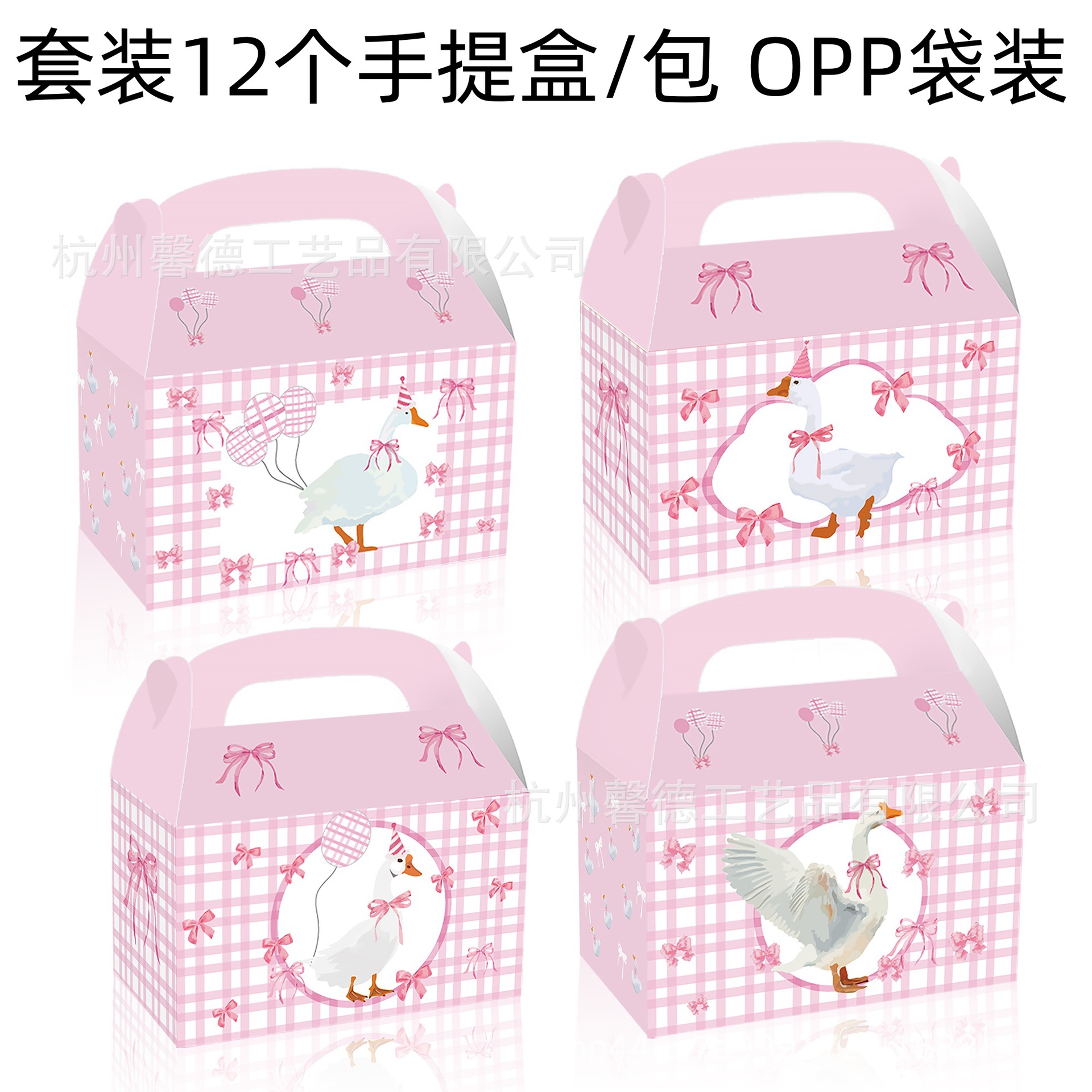 DD426外国貿易農場動物白ガチョウピンク誕生日帽子白鳥パーティープレゼントキャンディー手提げ紙箱