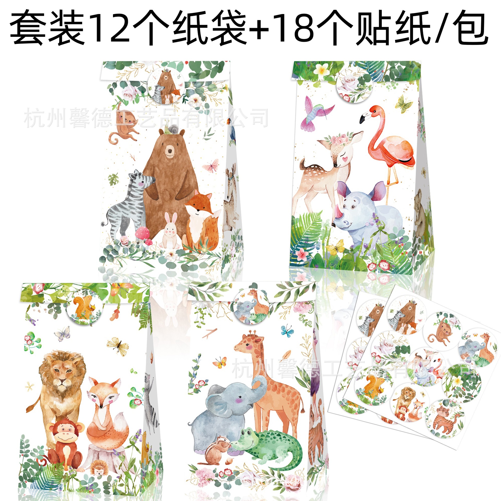 LB362外国貿易水彩ジャングル動物ライオン象カラーキツネパーティーキャンディギフトクラフト紙袋