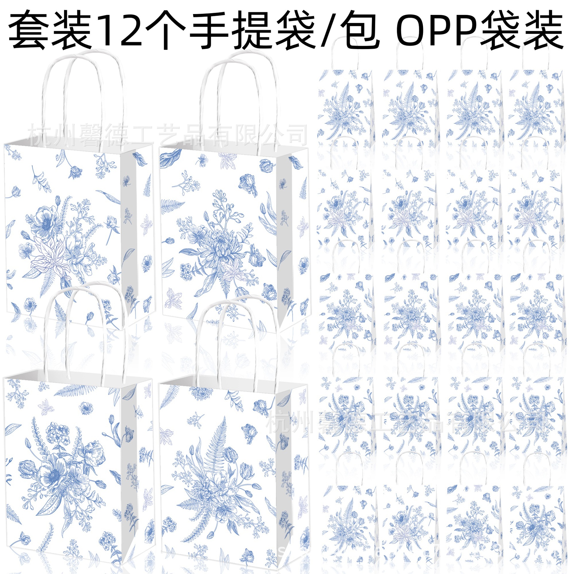 Bs035外国貿易中国風青い花青花磁器春誕生日パーティープレゼントキャンディー手提げ紙袋