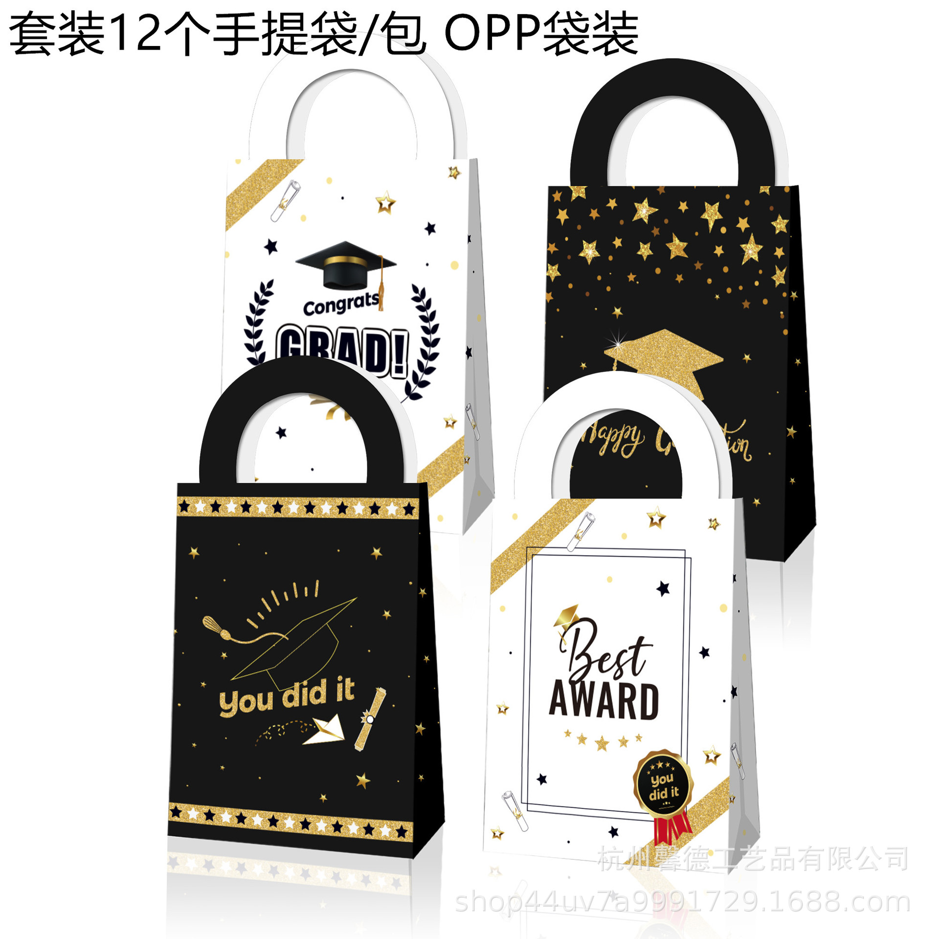 BD077 Amazon 2025年卒業シーズン 白黒系パーティー記念品一体型牛革紙袋