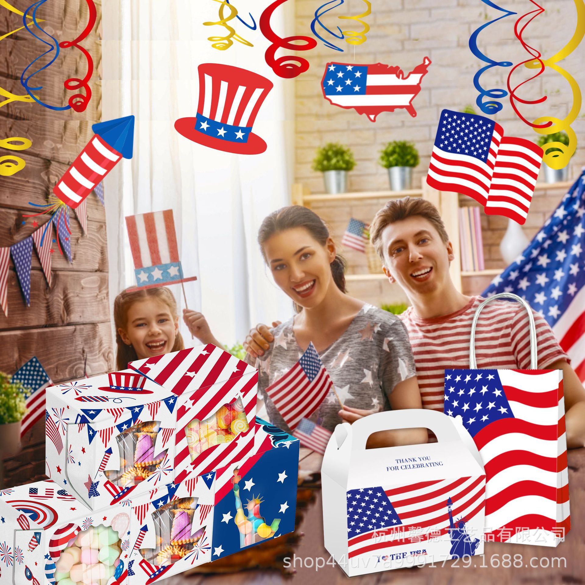 Hz 008アマゾンアメリカ独立日国慶節自由女神帽子国旗パーティー四角い窓付きギフトボックス