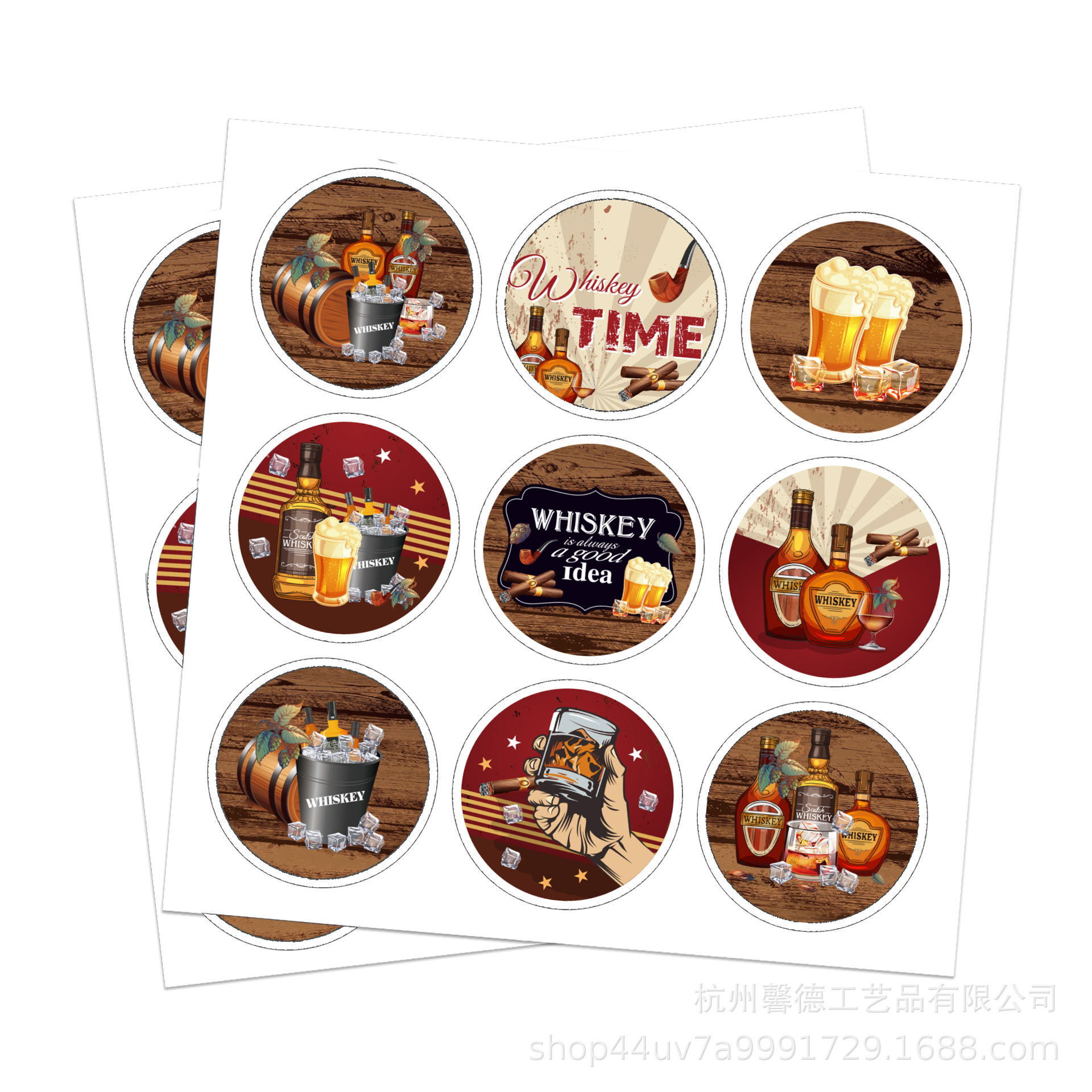 KK162アマゾン焼酎ウイスキーパイプ酒瓶飲み会ビール円形不乾性装飾シール
