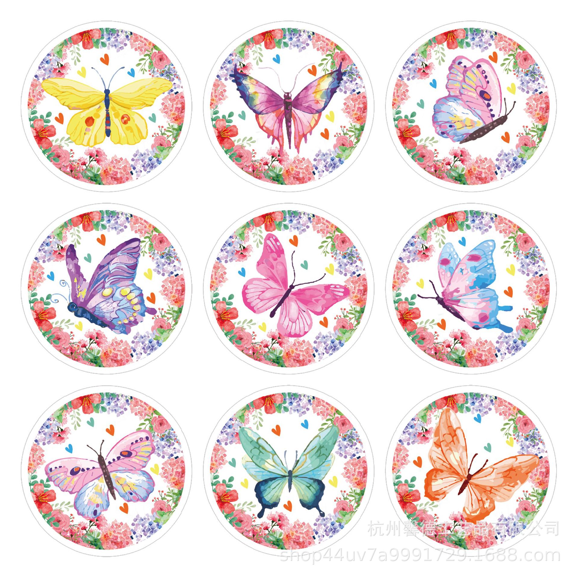 Kk164アマゾン春花蝶アンドロメダ飛翔翼円形ステッカー装飾シール