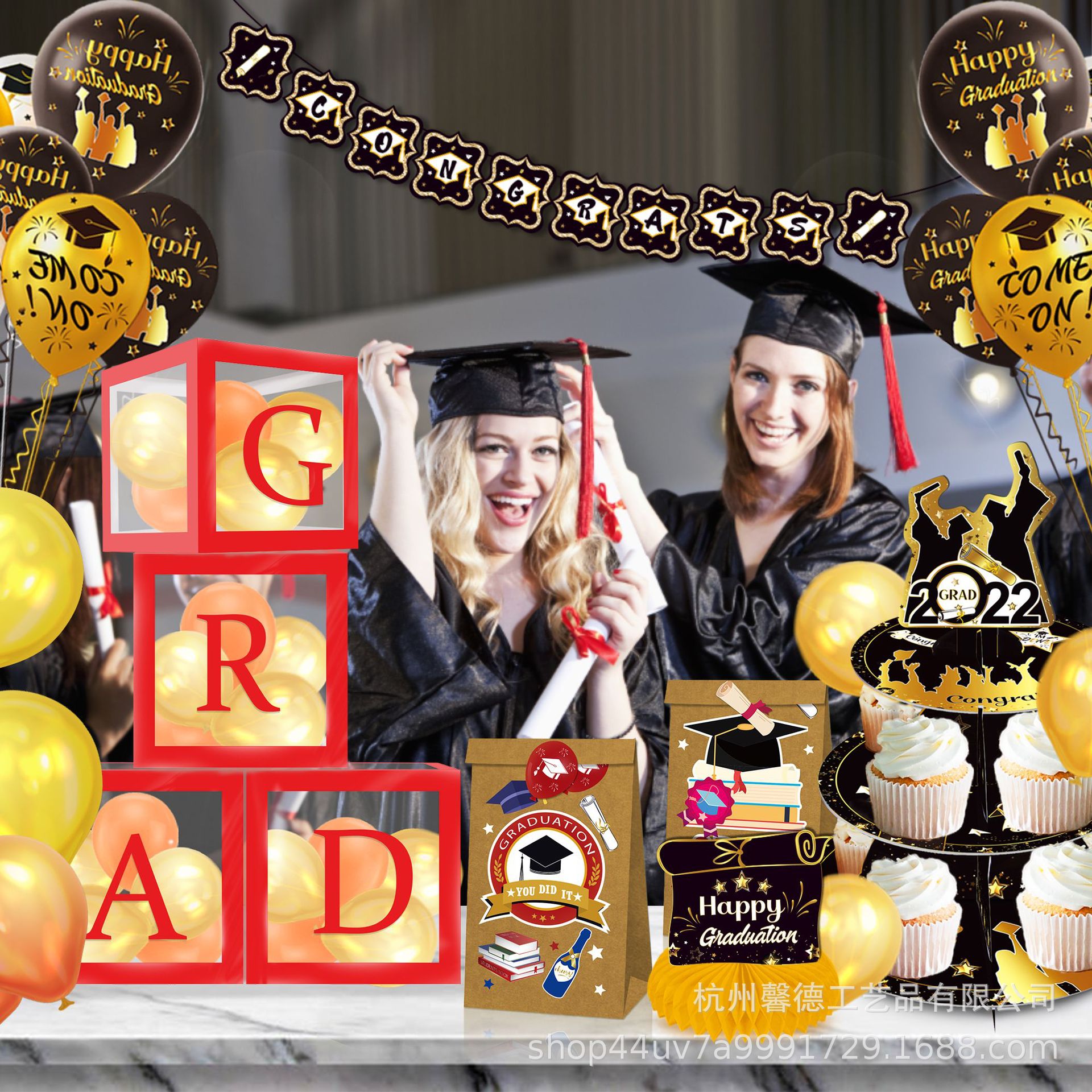 ZS008アマゾン2024年卒業シーズンGRAD金色パーティー風船装飾箱シーン配置