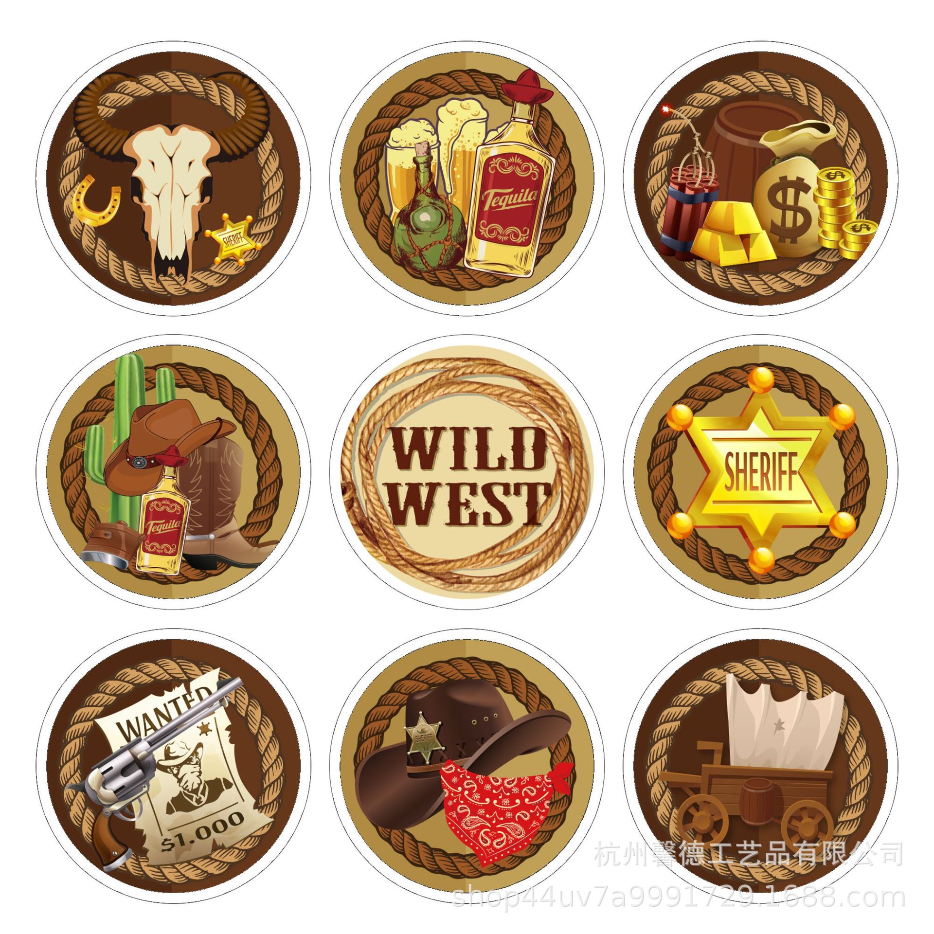 KK159アマゾン西部カウボーイゴールドラッシュ爆薬パーティー円形ステッカー装飾シール