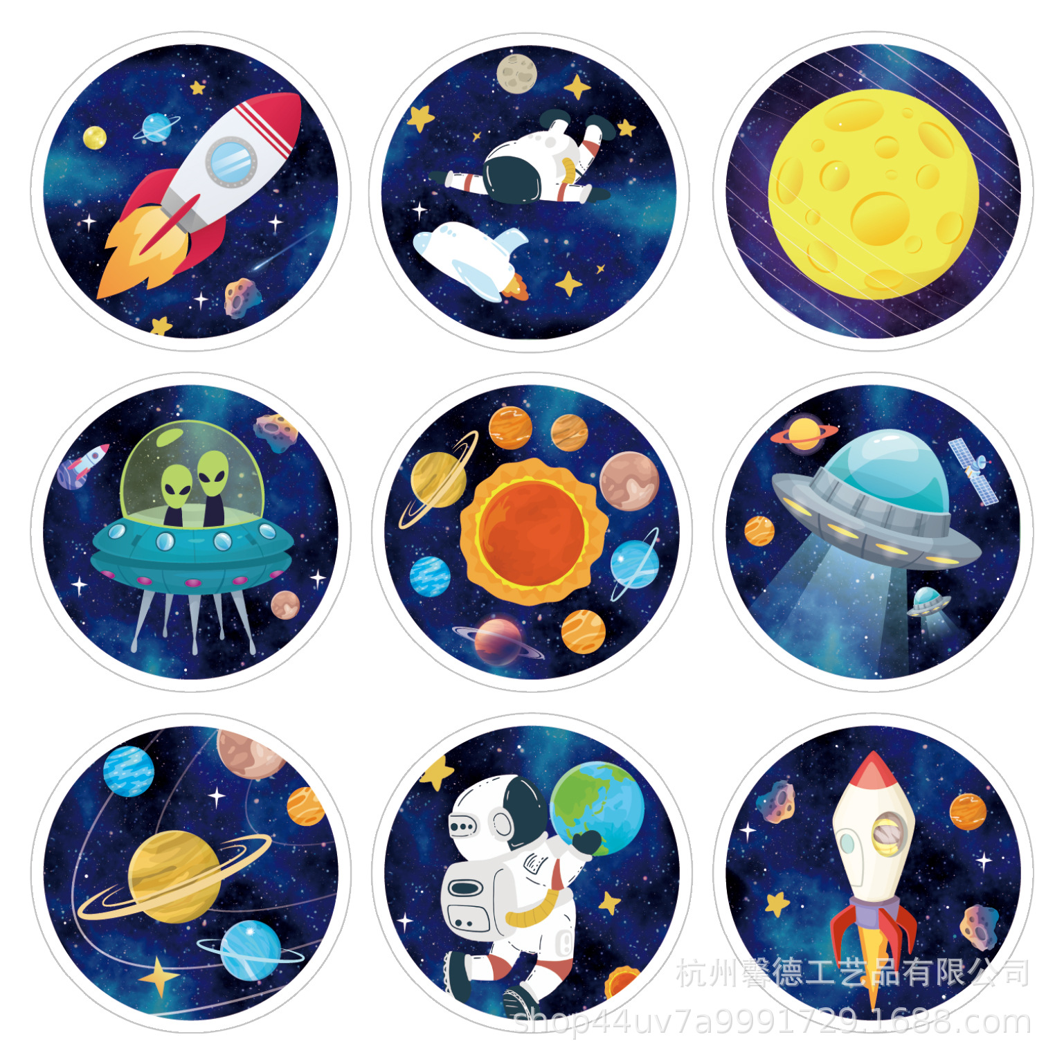 Kk158アマゾン宇宙星空科学者ロケット祭りパーティー円形ステッカー装飾シール