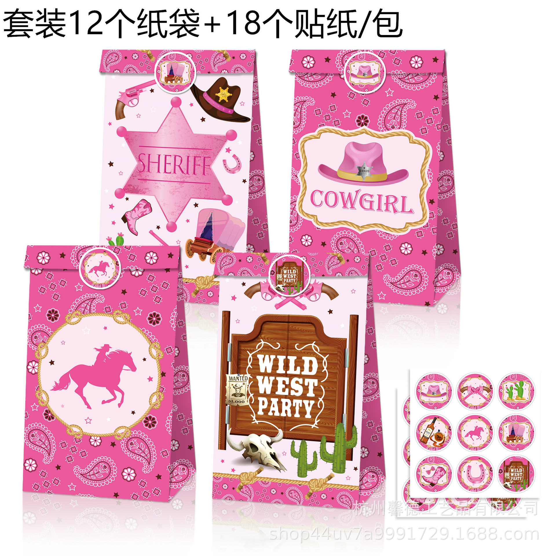 Lb157アマゾンピンク女の子西部デニムリボルバーパーティークラフト紙袋ステッカーセット