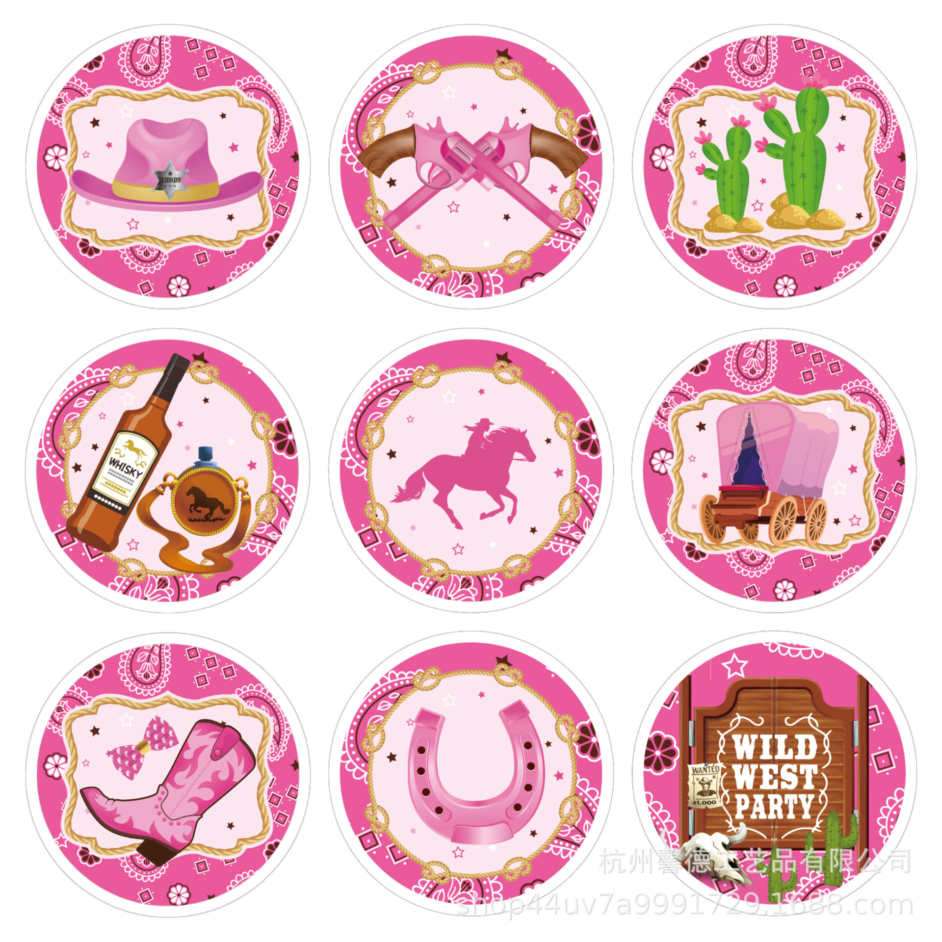 Kk157アマゾンピンク女子西部カウボーイブーツ仙人球円形ステッカーシール
