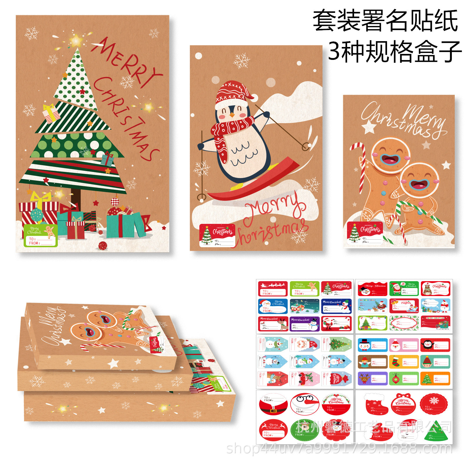 Bd055クリスマスツリーペンギン靴下自動車煙突ギフトボックスパーティーお土産クラフト紙手提げ袋