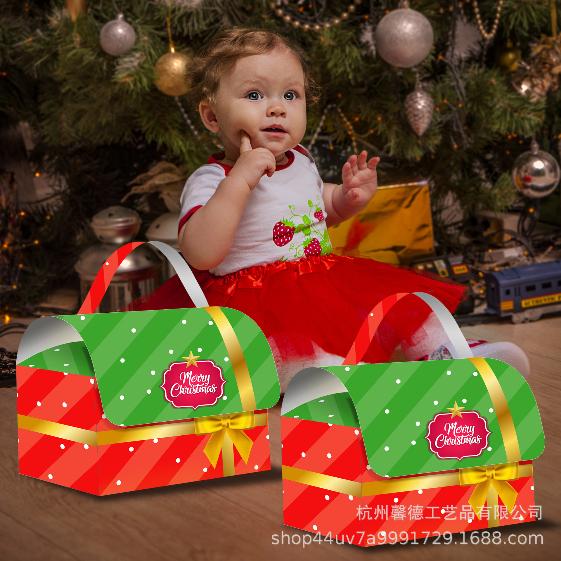 BZ005アマゾンクリスマス赤緑お祝いプレゼント宝箱パーティーキャンディー白い紙詰まり携帯ケース