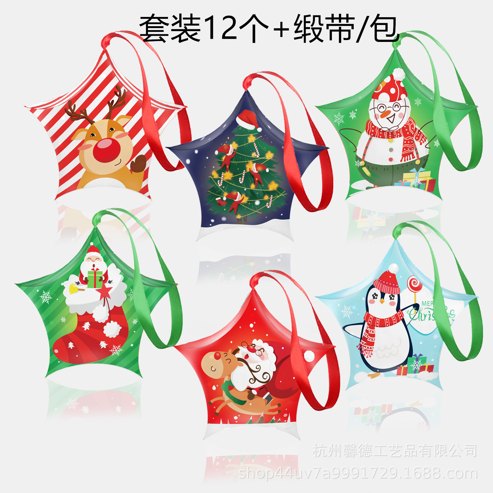 Wj001アマゾンクリスマス楽しい五角星リボンロープパーティーキャンディーチョコレート白い紙箱