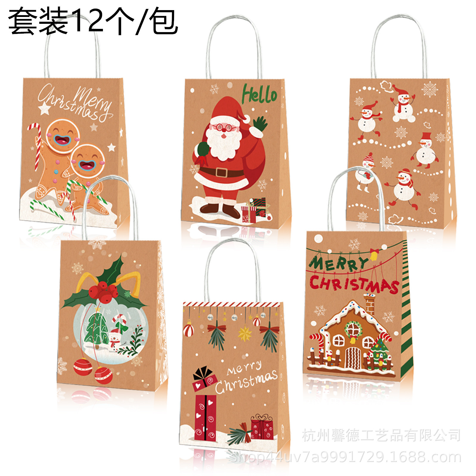 BD054クリスマス装飾老人雪花ヘラジカ山小屋ギフトボックスパーティーお土産クラフト紙手提げ袋