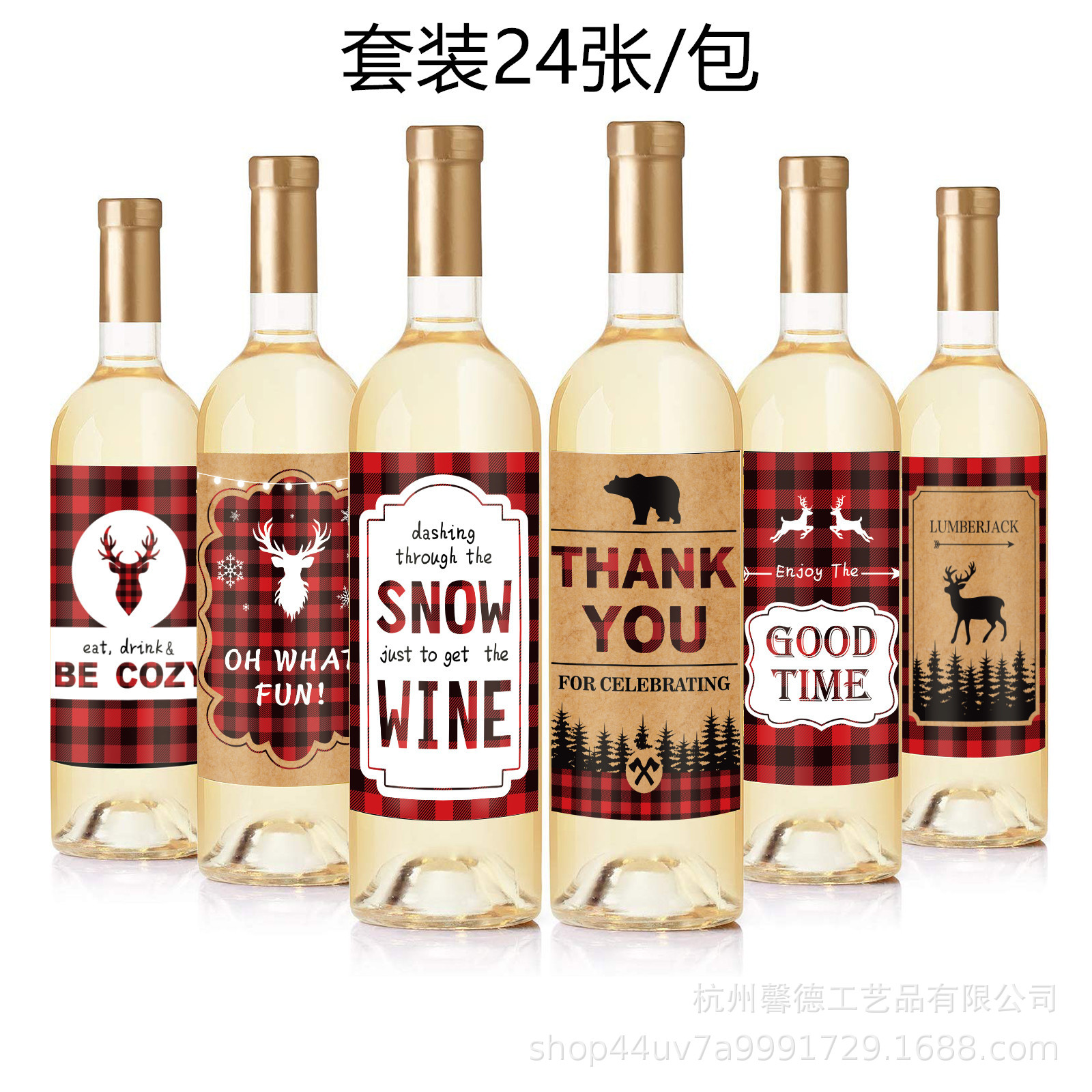 By003外国貿易ジャングル動物クリスマス鹿thank youワインボトルシャンパンステッカー装飾シール