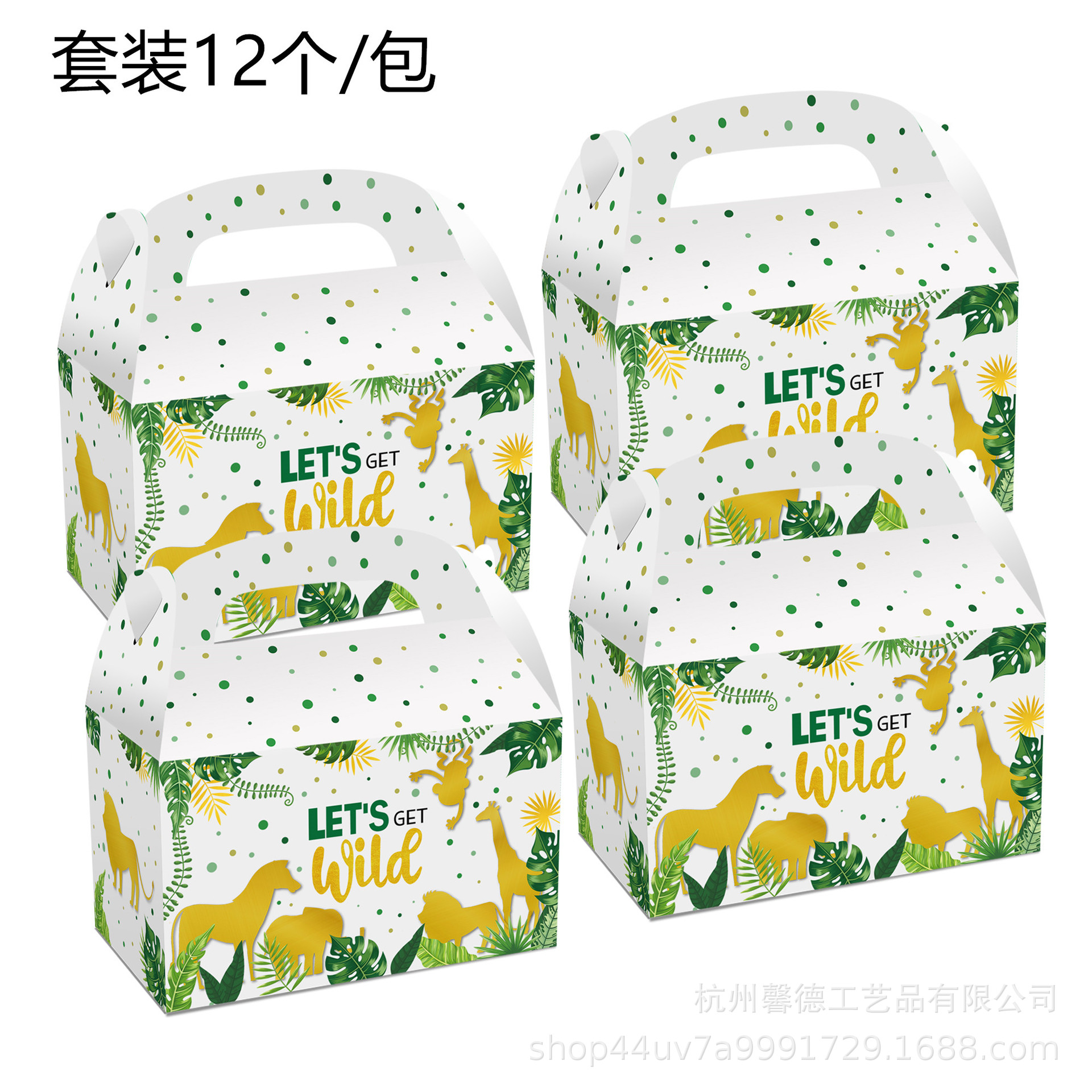Dd044アマゾンジャングル動物森林キリンモンキー象紙箱バッグ牛革手提げギフトボックス