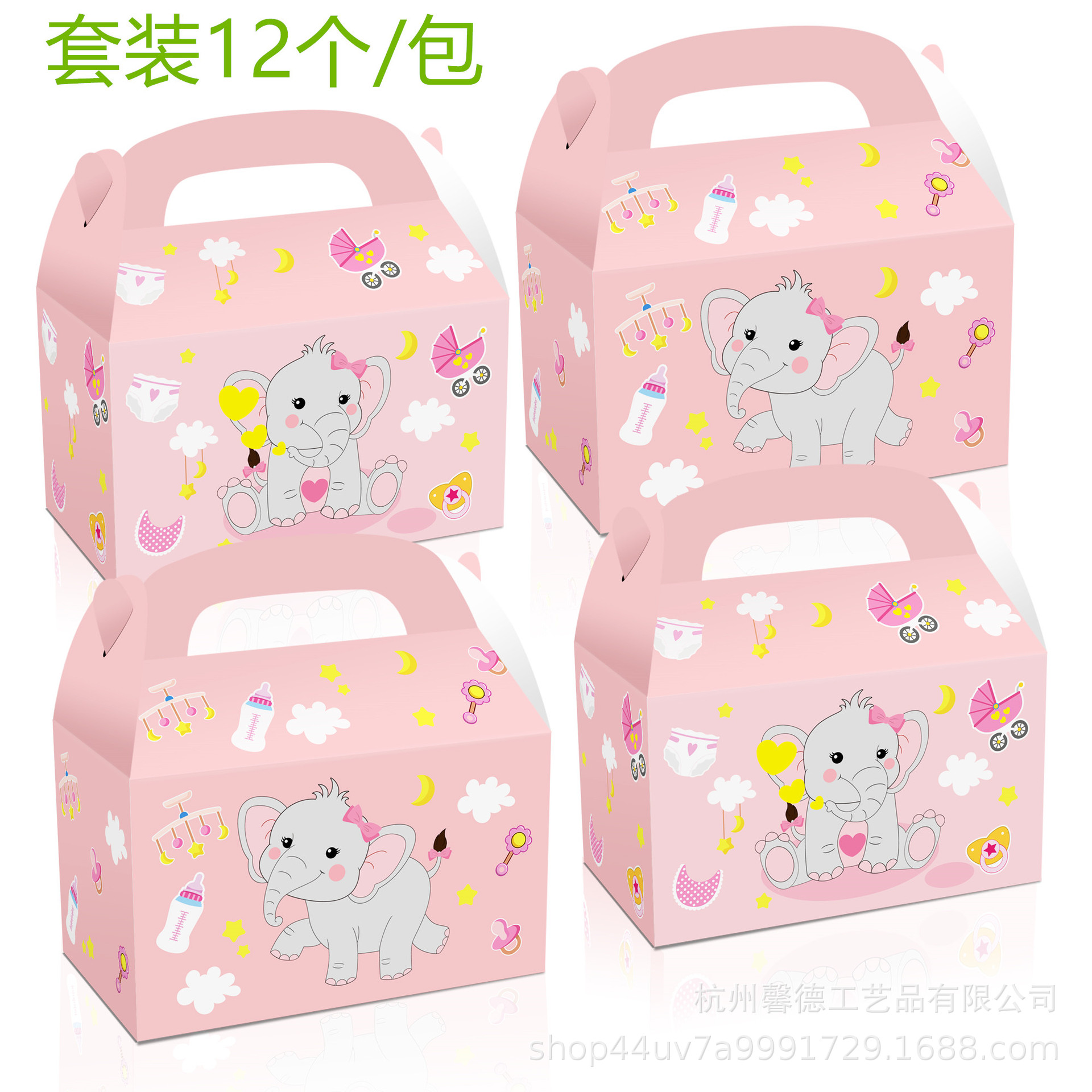 Dd443アマゾン象ピンク女子かわいい小象哺乳瓶テーマ紙袋牛皮手提げギフトボックス