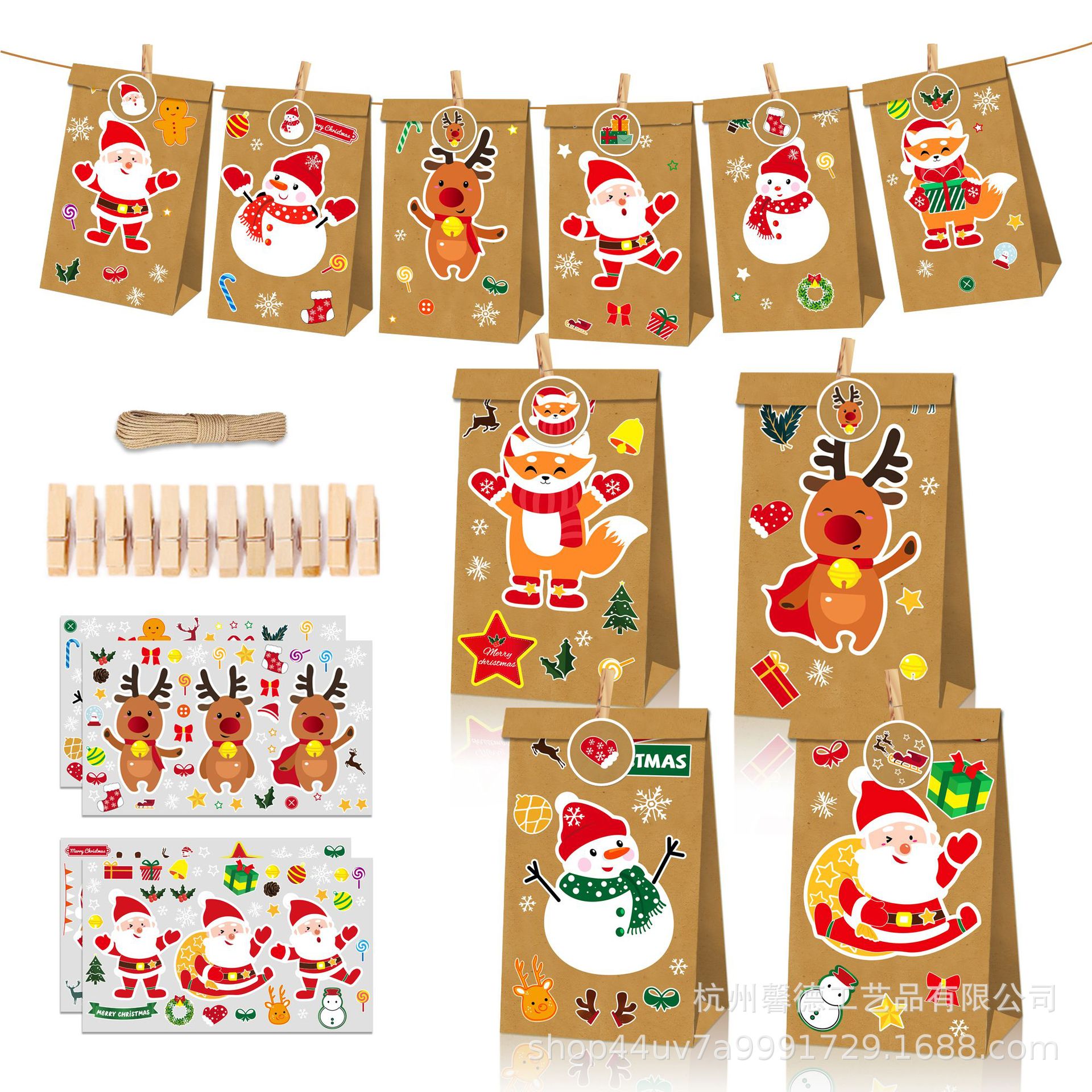 Lb1 13アマゾンクリスマス楽しい老人雪だるま鹿雪花シール装飾パーティークラフト紙袋