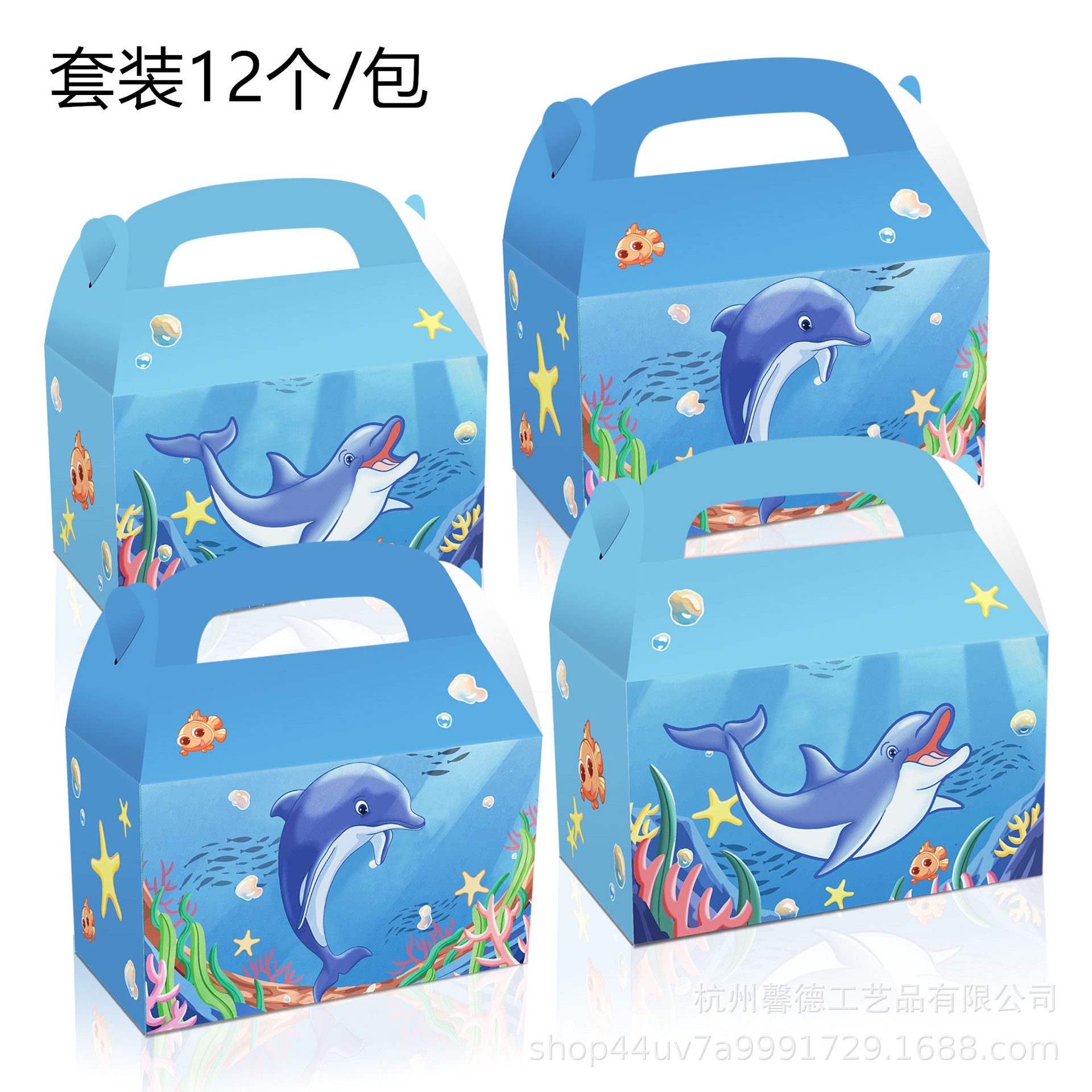 Dd044アマゾンブルーオーシャンかわいいイルカドルフィンパーティーギフト紙箱白い紙詰まり手提げ袋