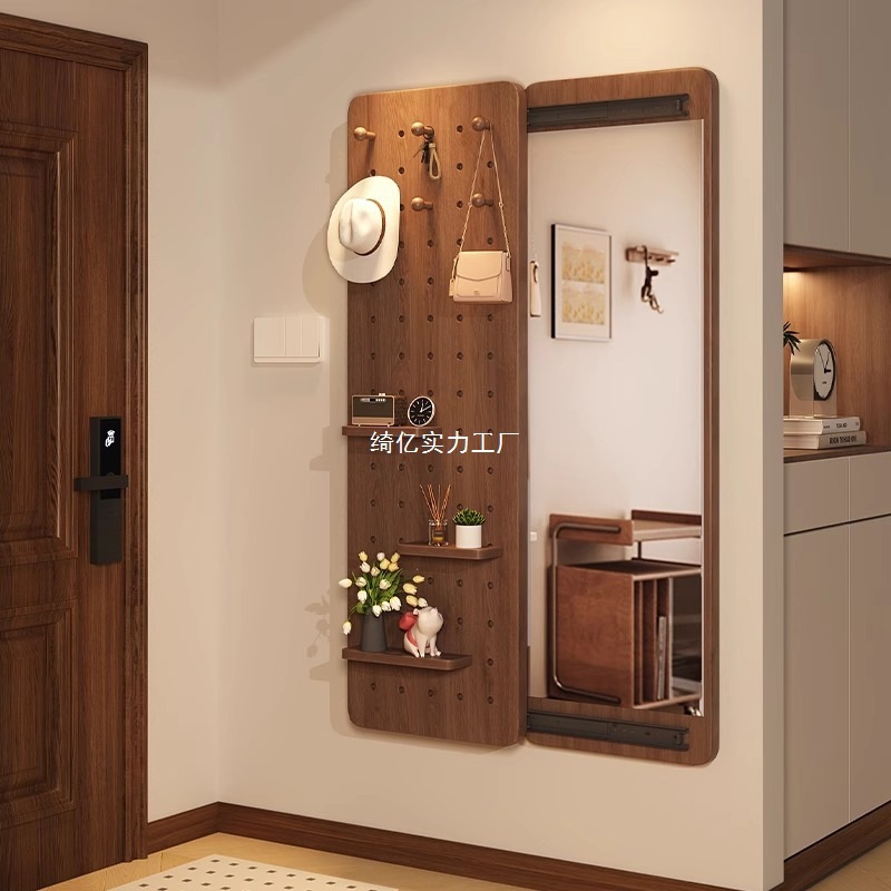 無垢材のホールボードドレッシングミラー、目に見えない引き出し式全身ミラー、壁掛け式玄関ドレッシングミラーを閉じて隠すことができます。