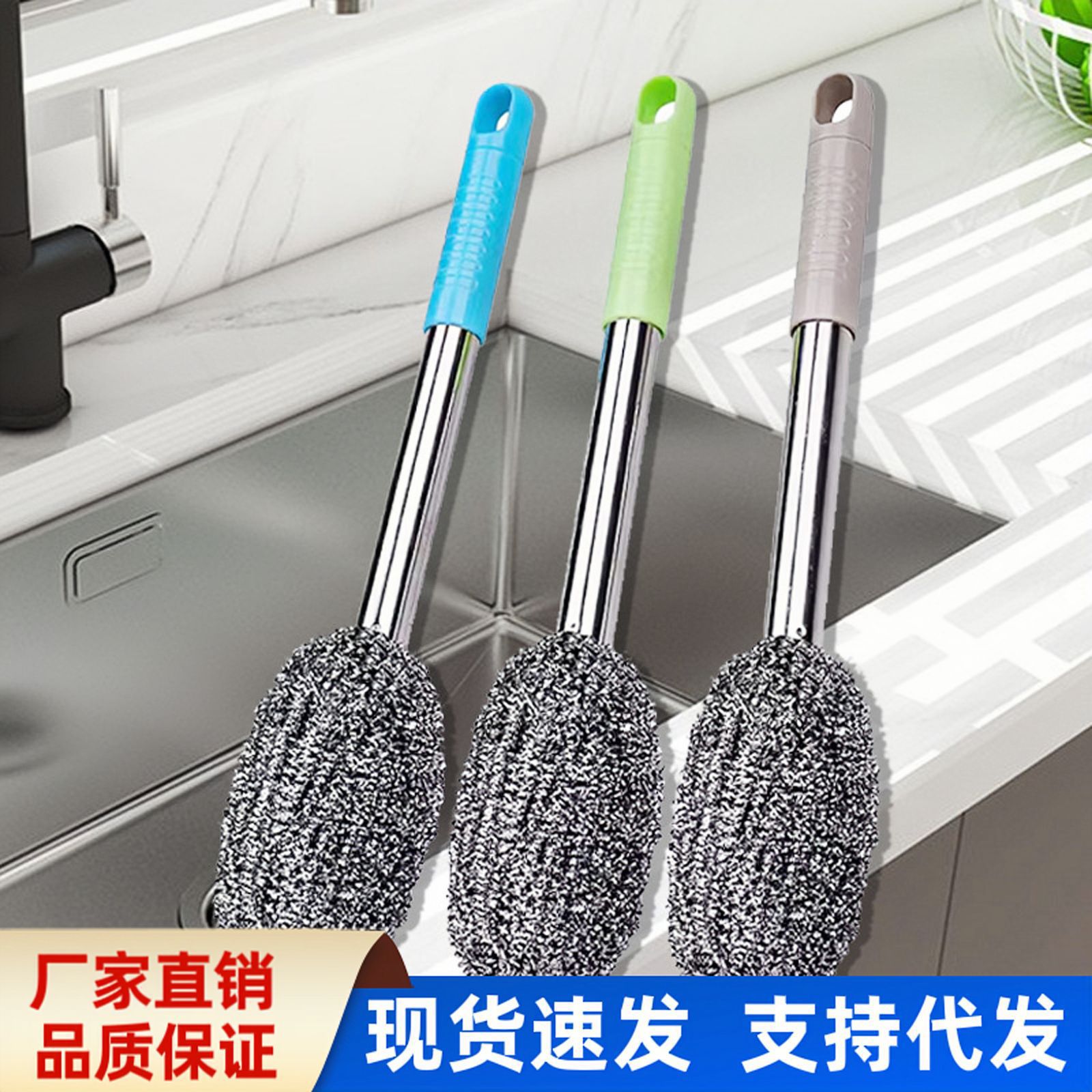長い柄のステンレスの鍋をプラスして線のボールのブラシの長い棒を塗って台所の瓶の缶をきれいにして鍋を洗って家庭を洗うことができません。