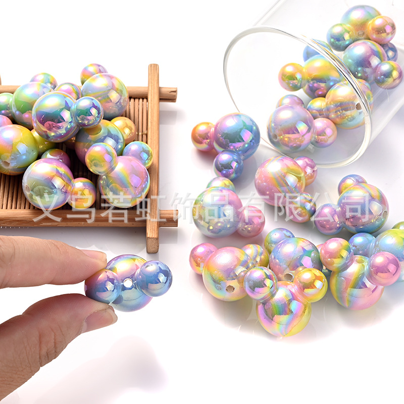 UVメッキ彩虹流砂落書きミッキー頭熊DIY手作りビーズチェーンアクセサリー