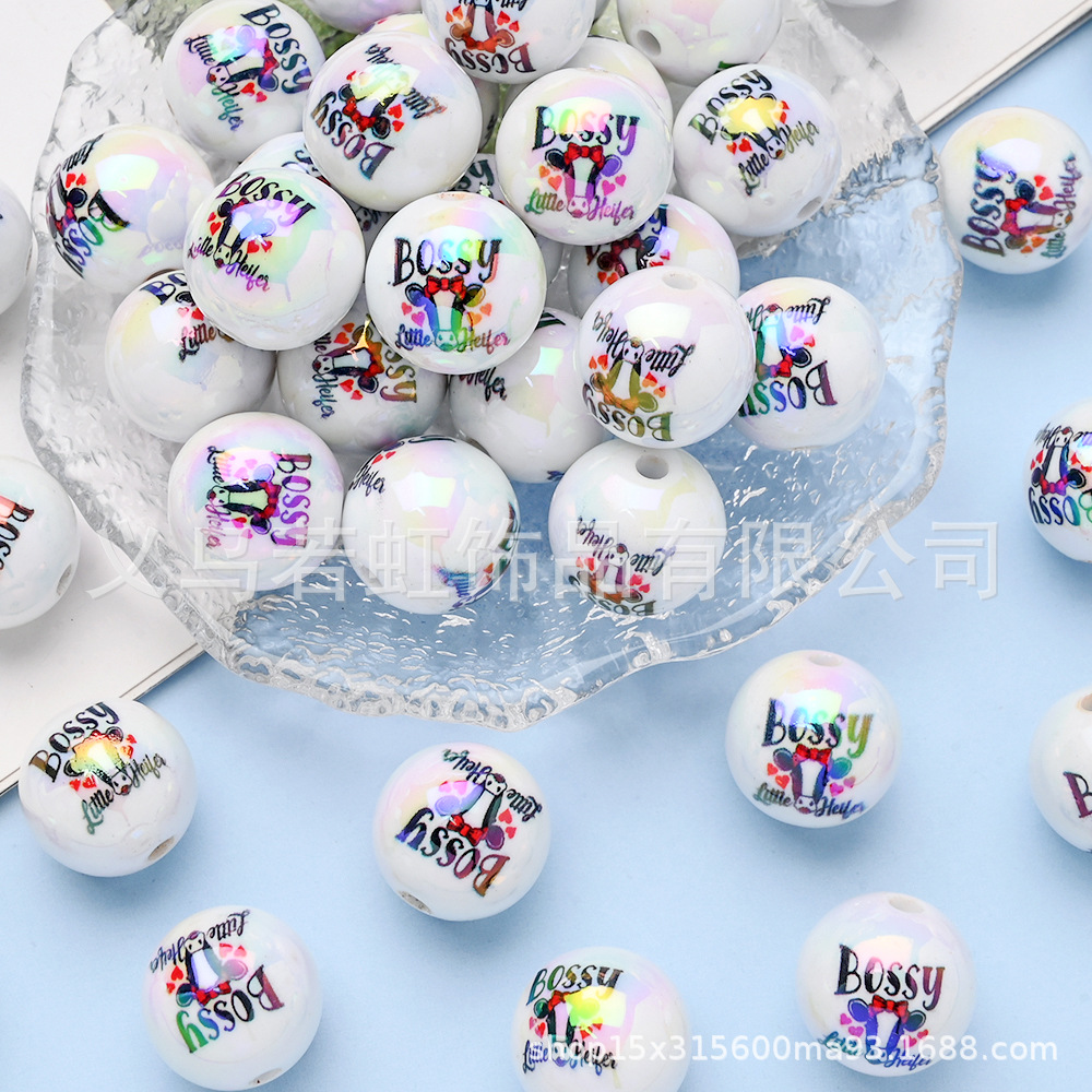 16 ミリメートルパーソナライズされた UV カラー印刷牛ビーズ DIY 手作りビーズルースビーズペン携帯電話チェーンジュエリーアクセサリー