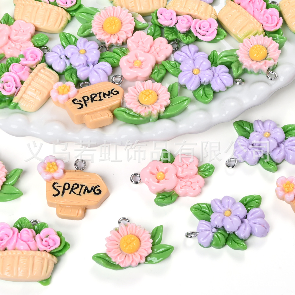 新しい樹脂アクセサリーフラワーバスケットフラワーストリートサイン手作り DIY キーホルダーバッグペンダントアクセサリージュエリー卸売