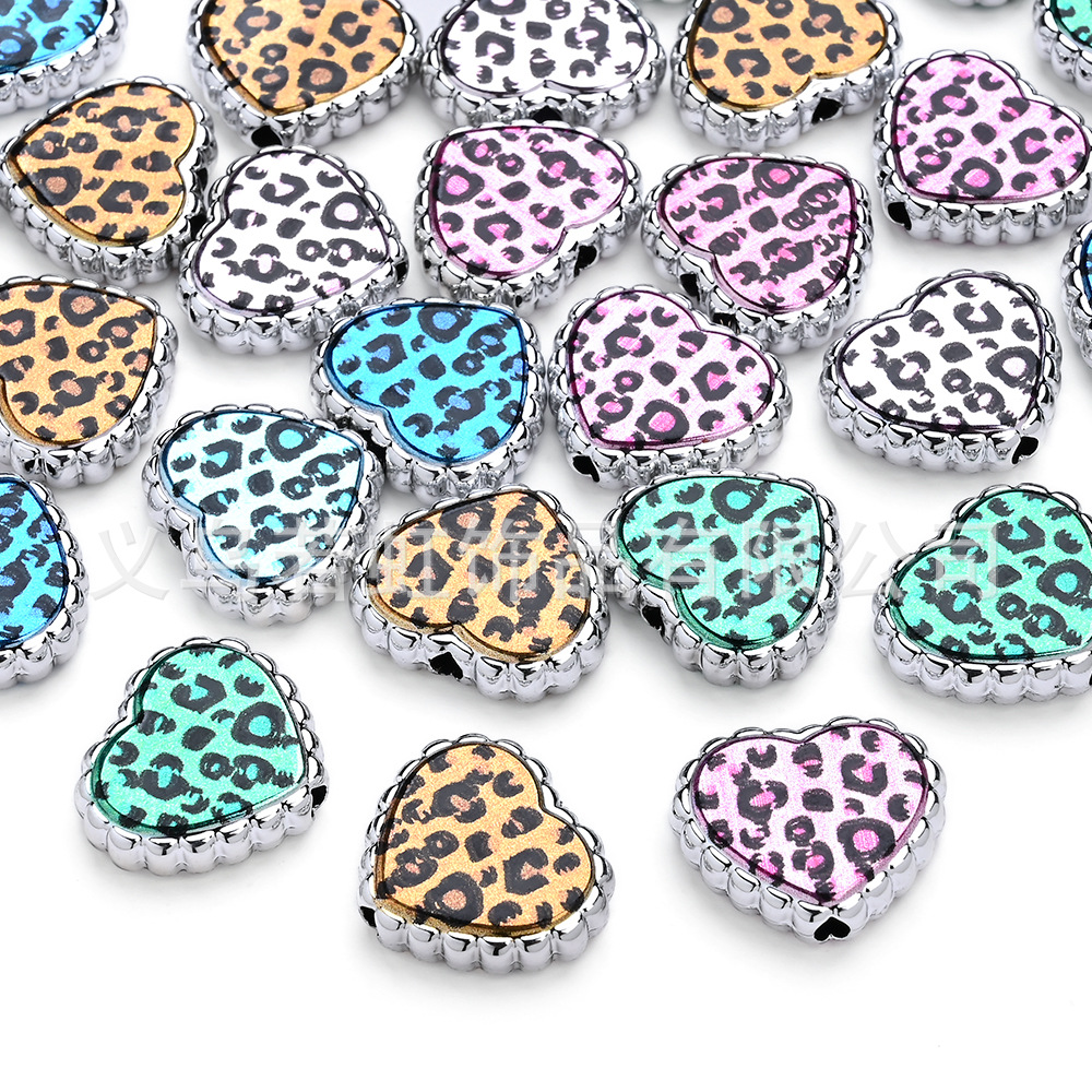 国境を越えた外国貿易レトロピーチハートヒョウ柄ダイヤモンドボールストレートホールビーズ DIY 携帯電話チェーンキーチェーンバッグチェーンジュエリーアクセサリー