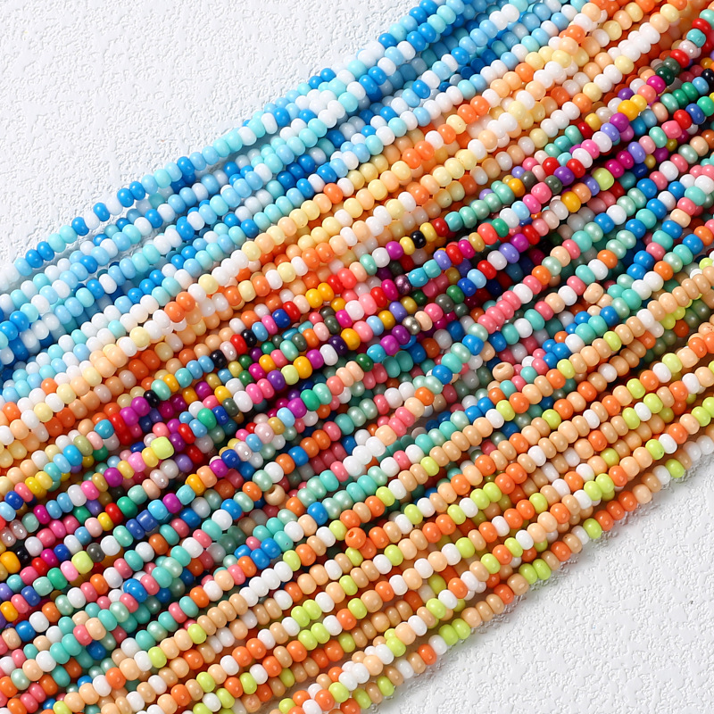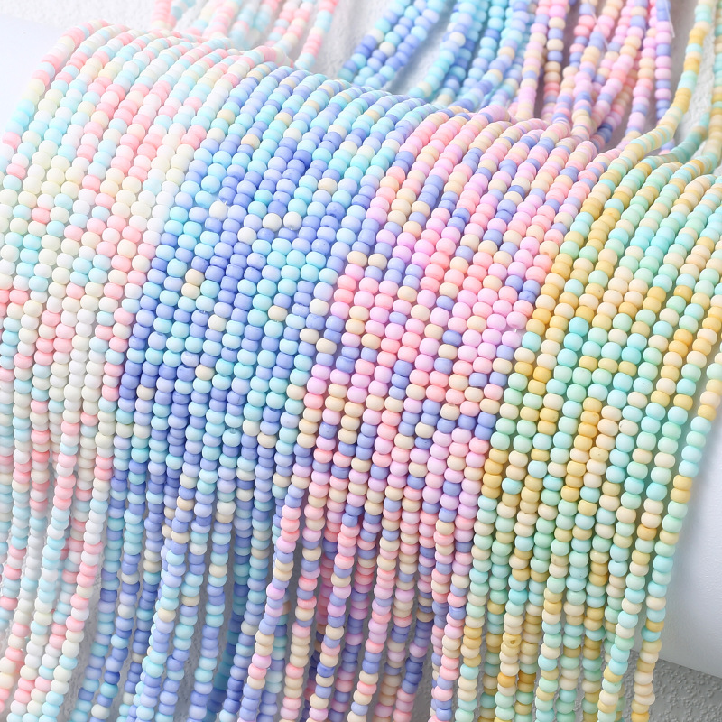 新型マカロン3mmすりガラス米珠カラー散珠diyブレスレットネックレス耳飾りビーズ材料