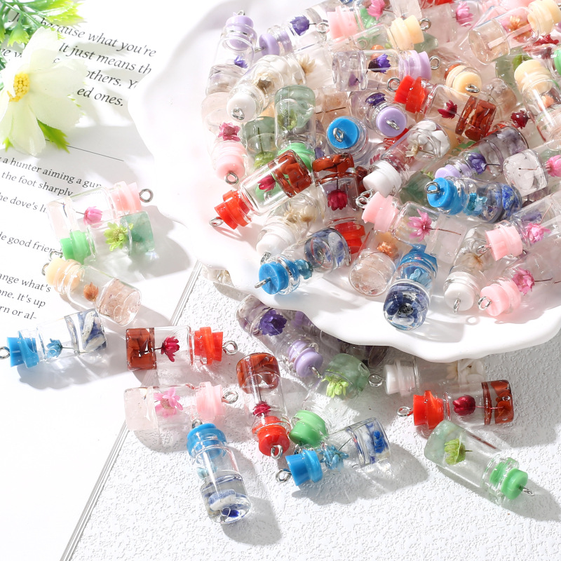 Diy願い事の瓶の夜光風の乾いた花の漂流瓶の飲み物の瓶の幸運な瓶の発光のペンダントのキーホルダーは飾ります。