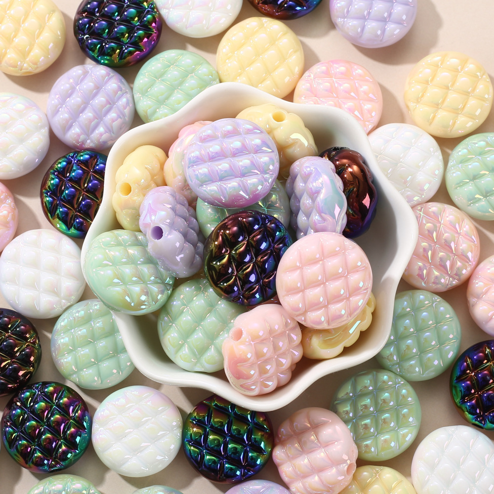 焼き漆ワッフル月ビーズuv格子縞縦穴散珠diy携帯電話チェーンキーホルダーネックレスアクセサリー部品
