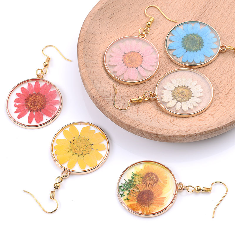 アマゾンの人気新型永生花ドライフラワーイヤリング薔薇真花耳飾り個性樹脂アクセサリー卸売り代発