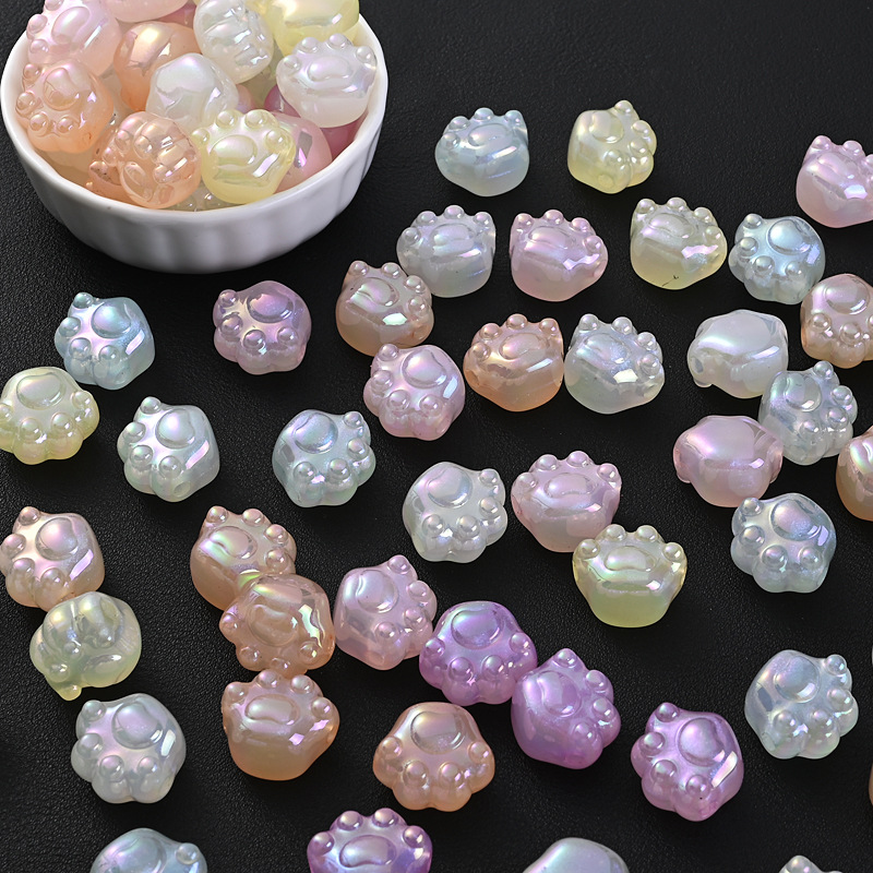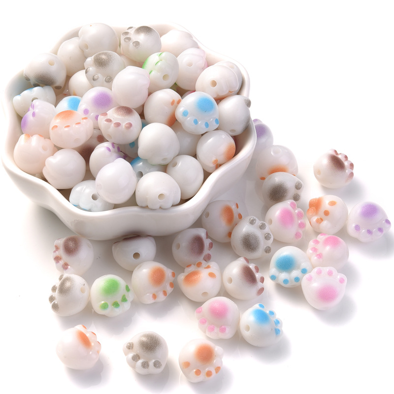 漫画かわいい炭焼き立体猫爪猫掌直孔ビーズdiyイヤリング女性ブレスレット材料卸売り