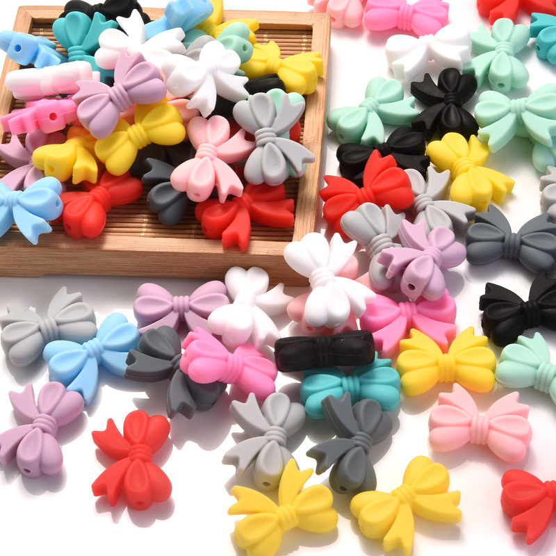 シリコンの蝶のdiyのアクセサリのカラーの穴があいて蝶結びのビーズの赤ちゃんの歯のゴムの散珠のシリコンのビーズ