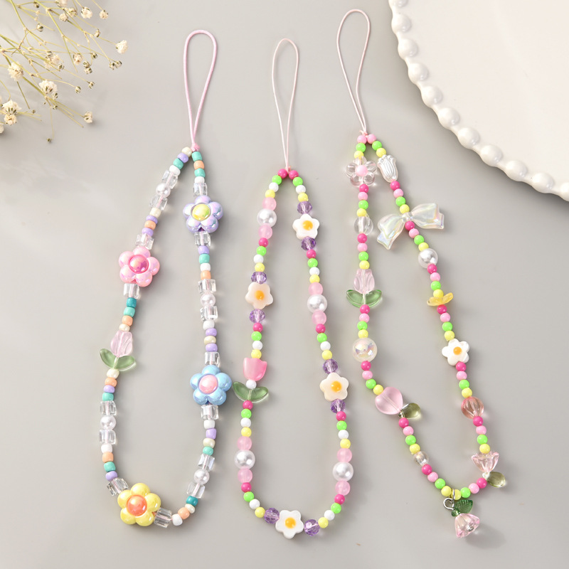 クロスボーダーの新型チューリップの花の数珠の携帯電話のひもの女性の花の携帯電話のチェーンのファッションのブレスレットの工場は卸売りします。