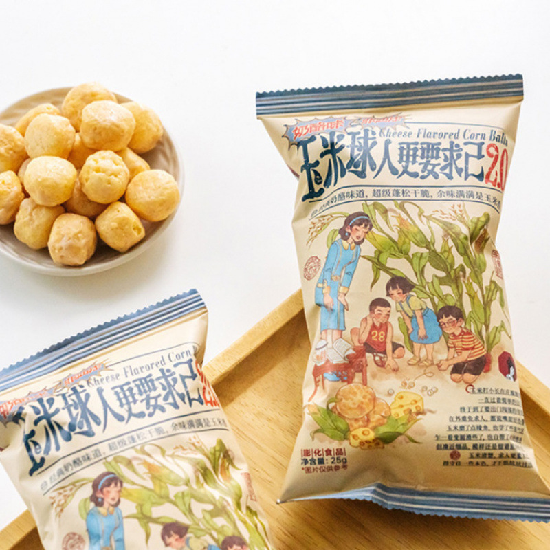 ティーカラーコーンボールはさらに自分自身を要求します。チーズ風味のノンフライ膨化スナック