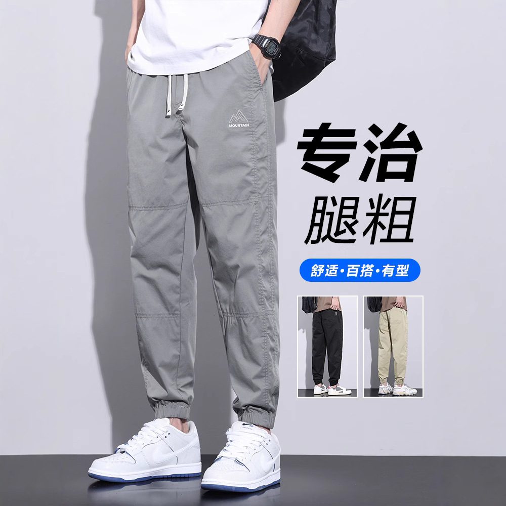 メンズカジュアルパンツ夏薄手万能トレンドブランドハーレムパンツメンズアイスシルク速乾ルーズレギンススポーツパンツ