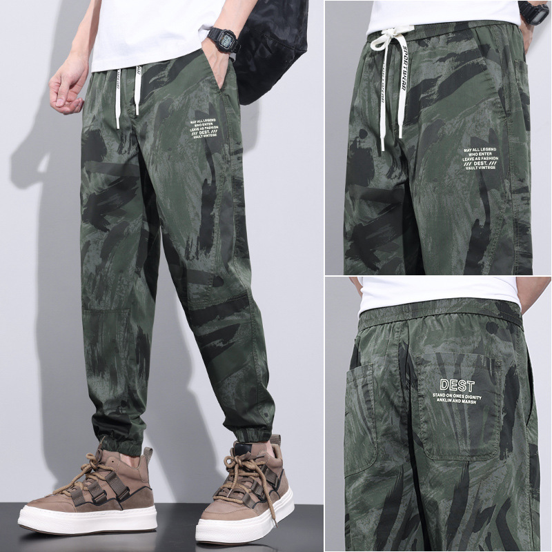 迷彩オーバーオールメンズ 2025 春の新アメリカのトレンディなブランドルーズ夏スポーツアイスシルクカジュアルパンツ速乾性