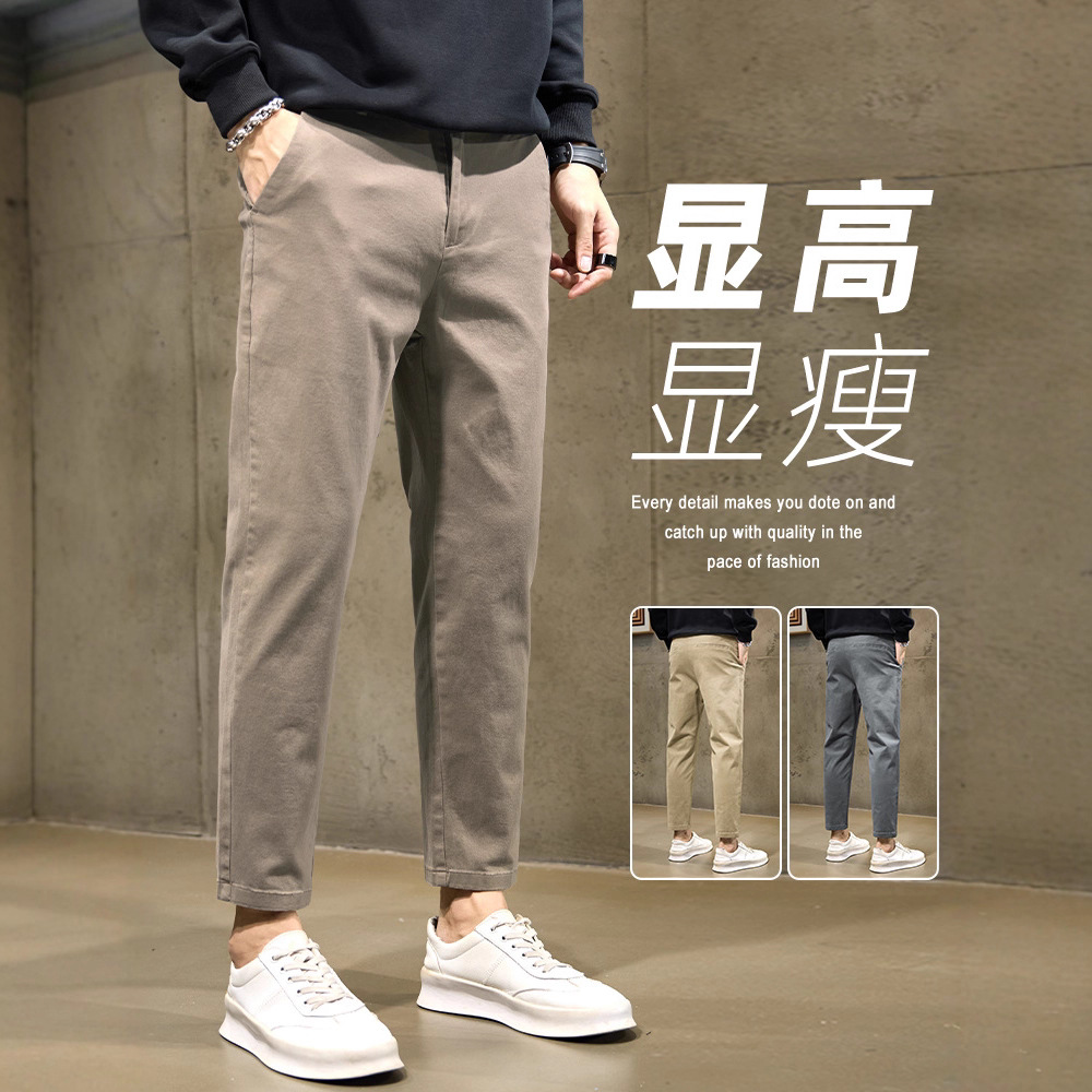 ブラウンカジュアルパンツメンズ春夏ピュアコットンビジネス9点ストレートスリムフィット春ズボンスリムスーツパンツ