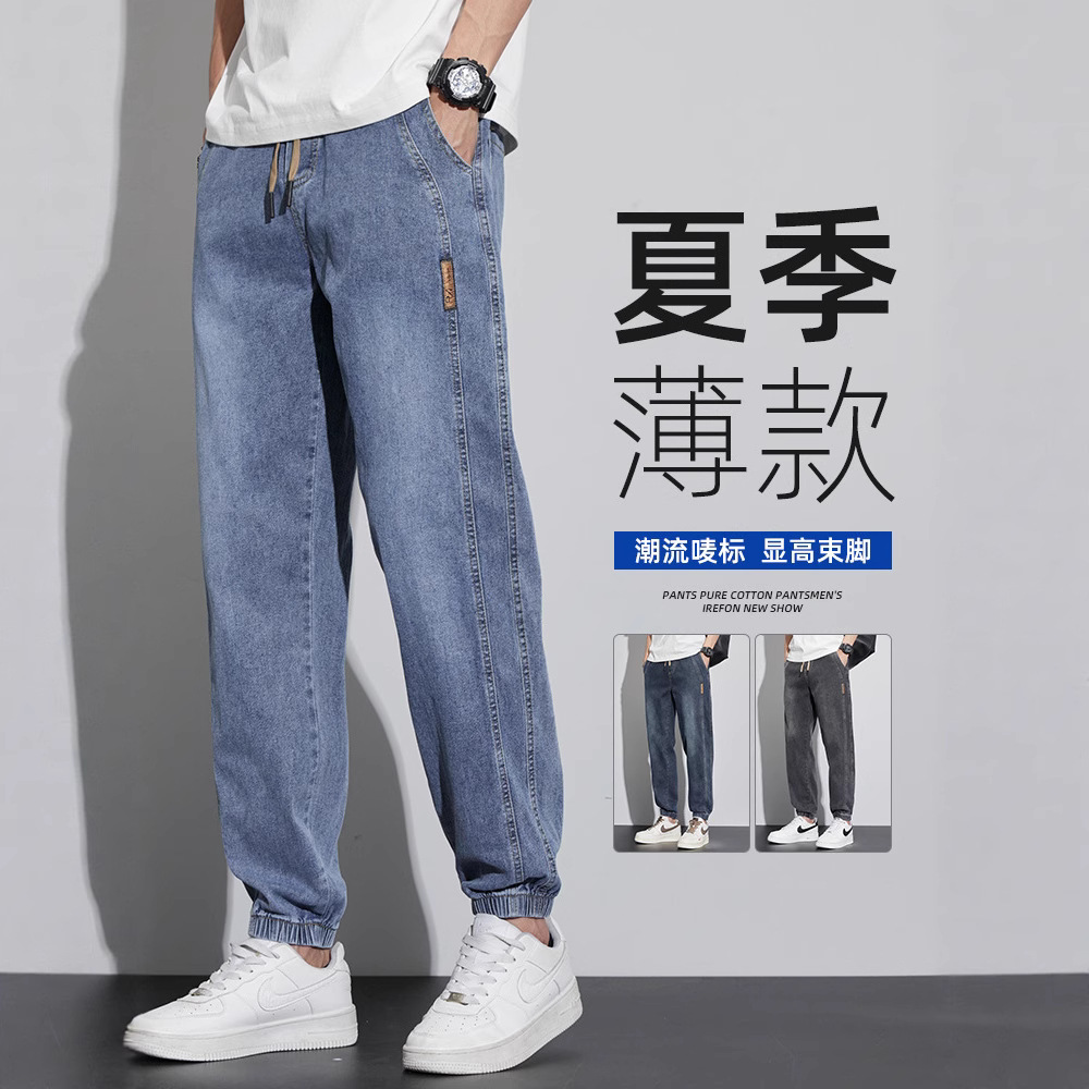 夏薄いアメリカンレトロジーンズメンズルーズレギンス弾性ウエストカジュアル弾性ハーレム秋パンツ