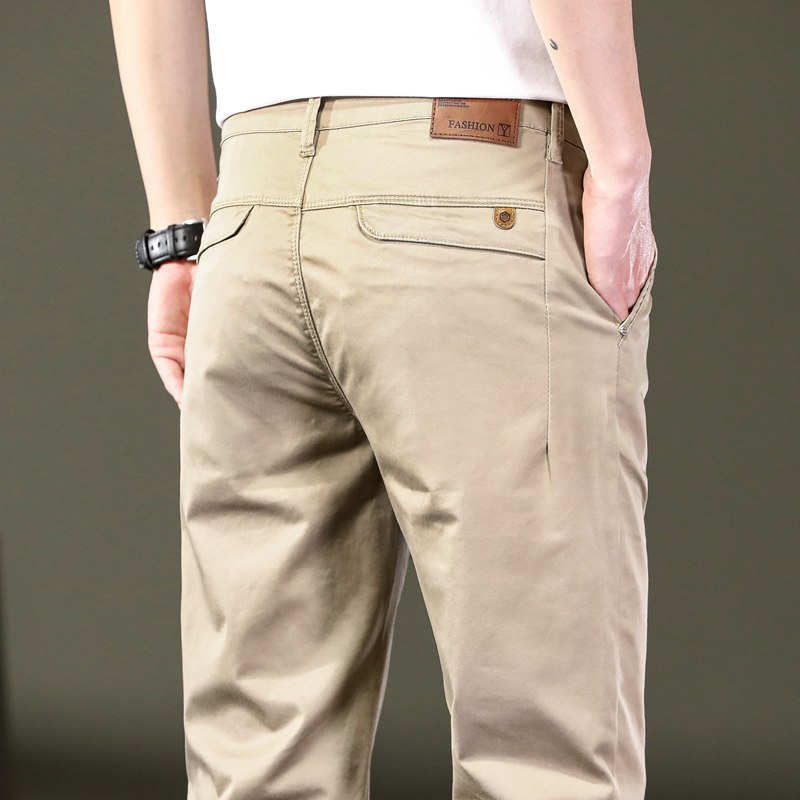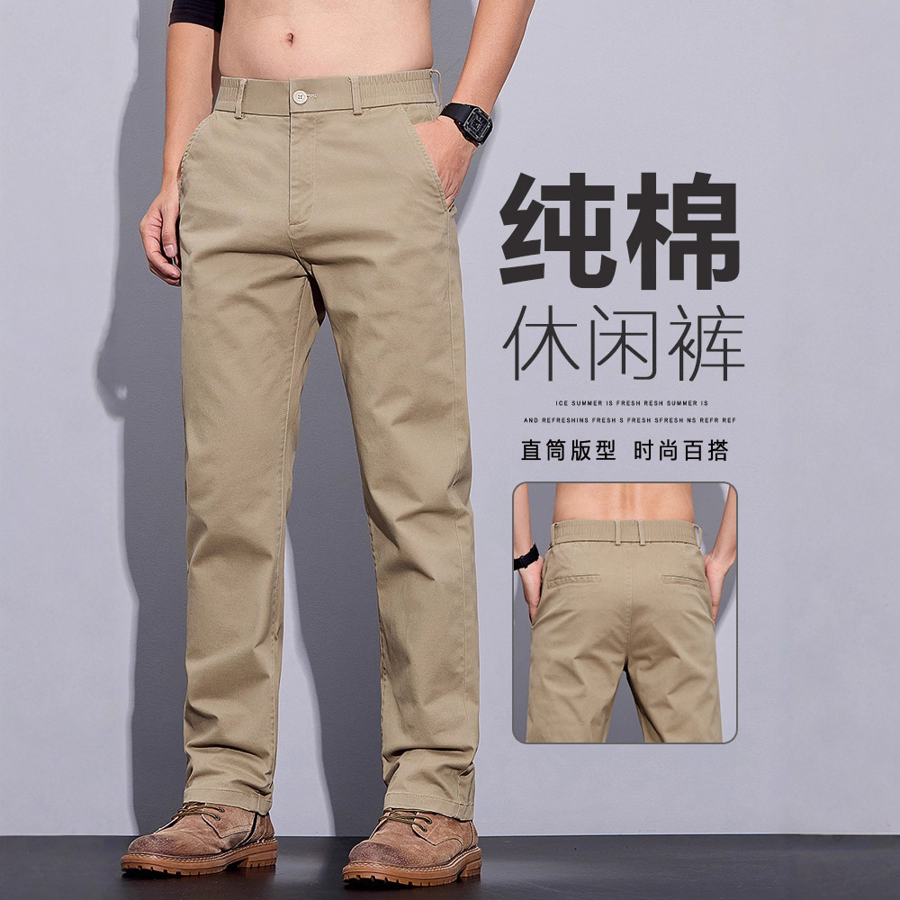 メンズカジュアルパンツ純綿ワークパンツメンズ夏薄いストレートルーズカーキビジネススーツパンツ