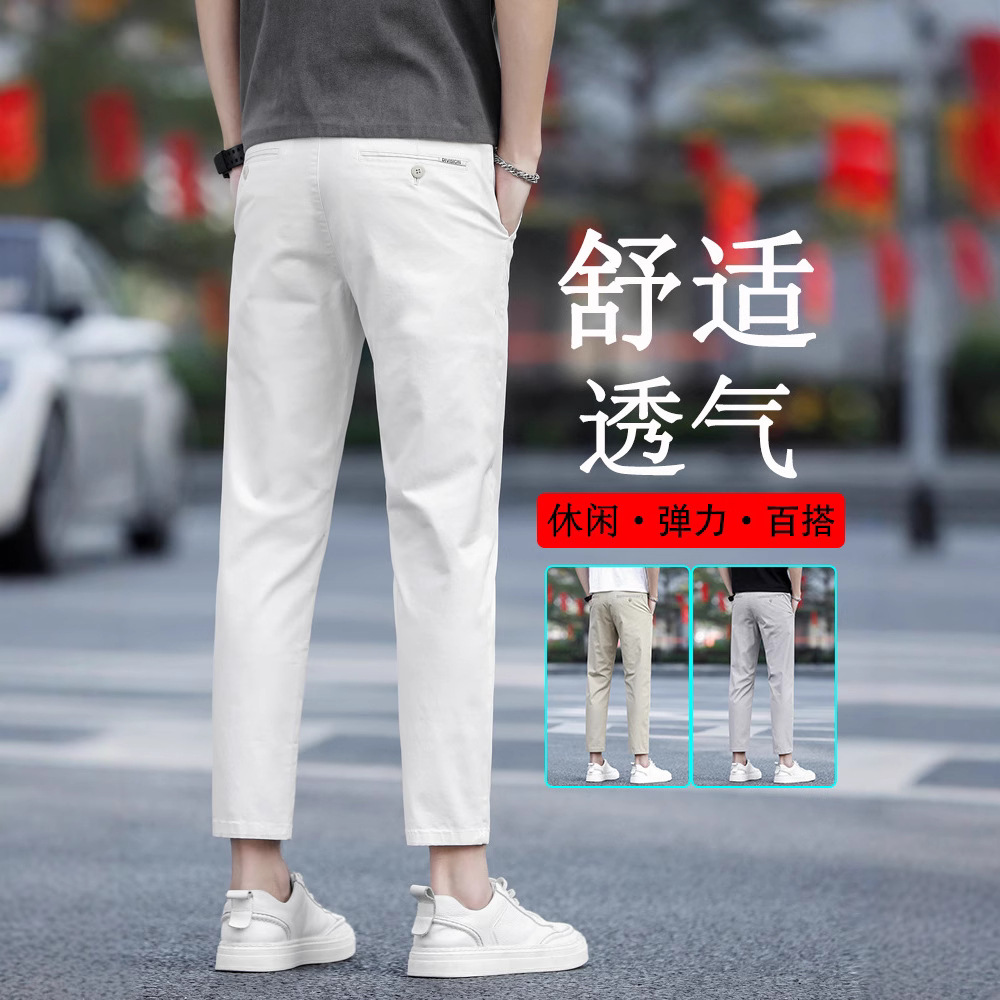 夏のメンズカジュアルロングパンツメンズスリムフィット純綿メンズパンツ2025新しいストレートホワイトスーツパンツ