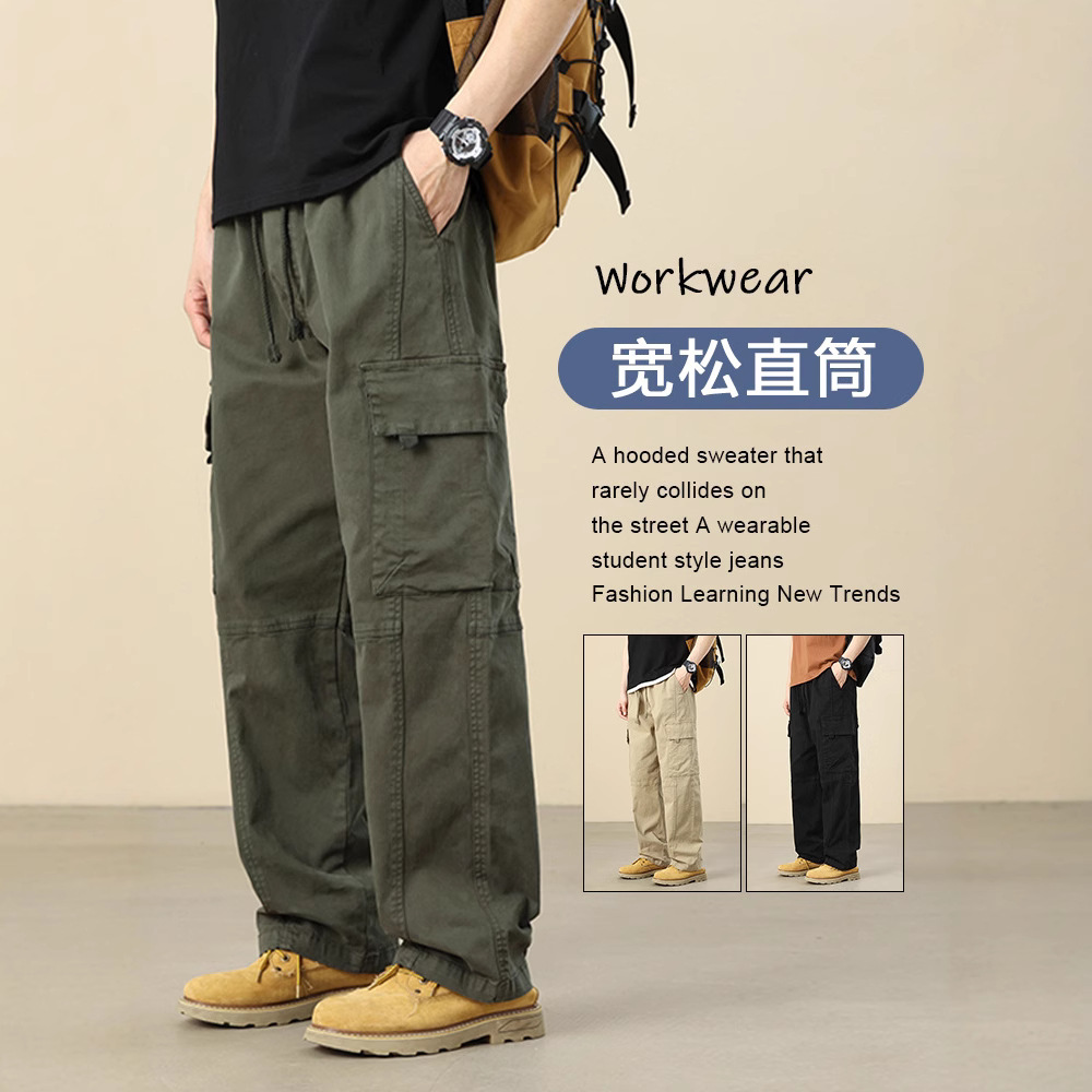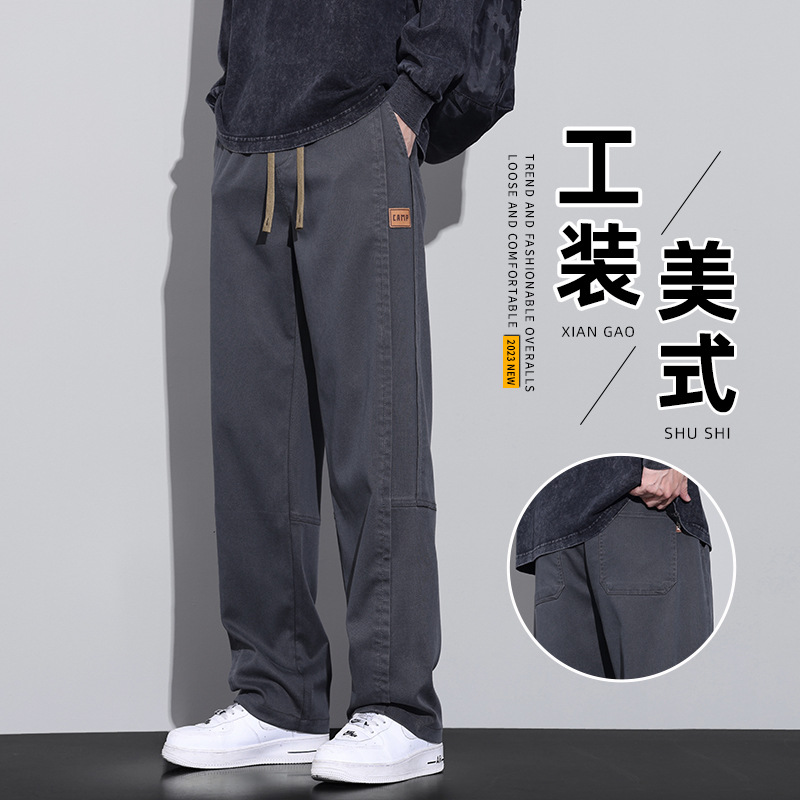 春秋タイプの工装ズボン男性直筒ゆるいファッションブランド男性カジュアル広脚長ズボン2024年春の新製品