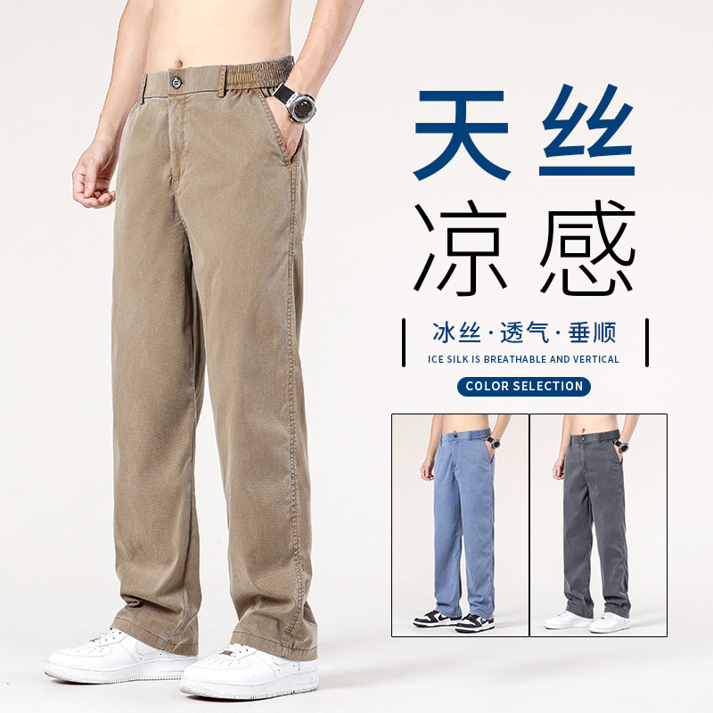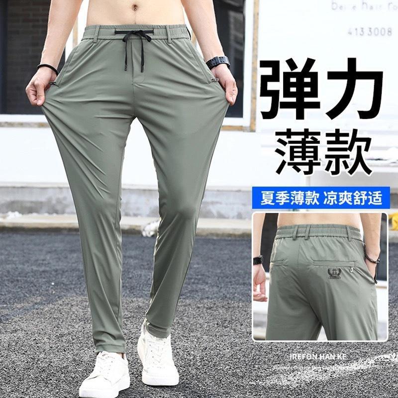 2025 新しい夏の薄いメンズカジュアルパンツストレートアイスシルククール高弾性速乾パンツメンズスポーツパンツ